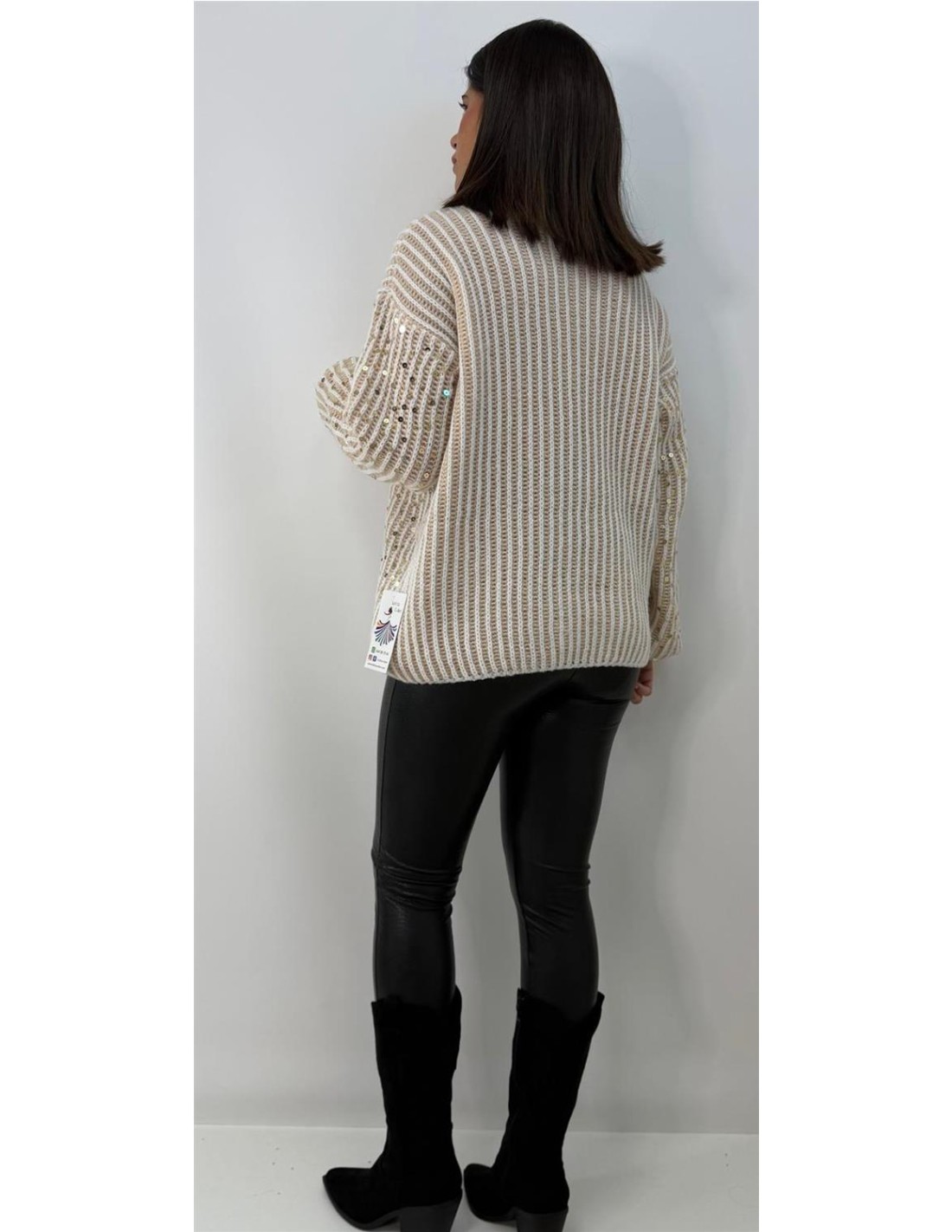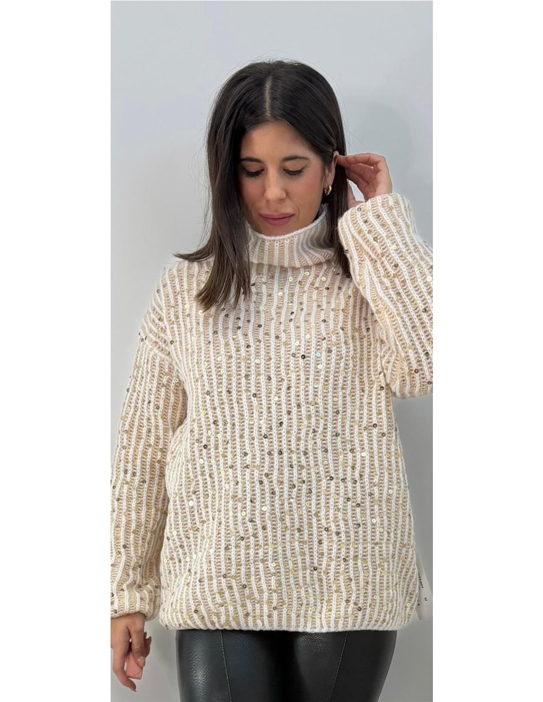Jersey de lana, con alguna lentejuela de cuello alto basico. Talla unica 34 a 42 aprox