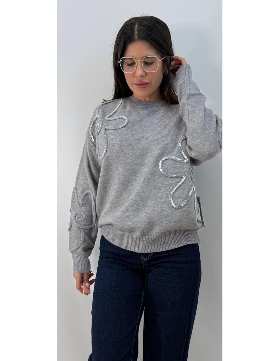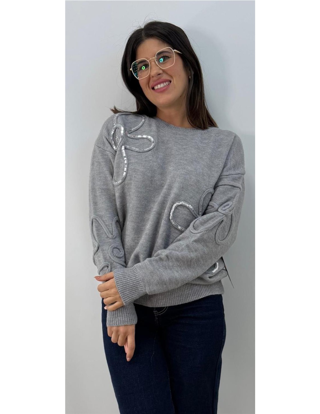 Jersey de lana con estampado de lentejuela, Talla unica 34 a 42 aprox