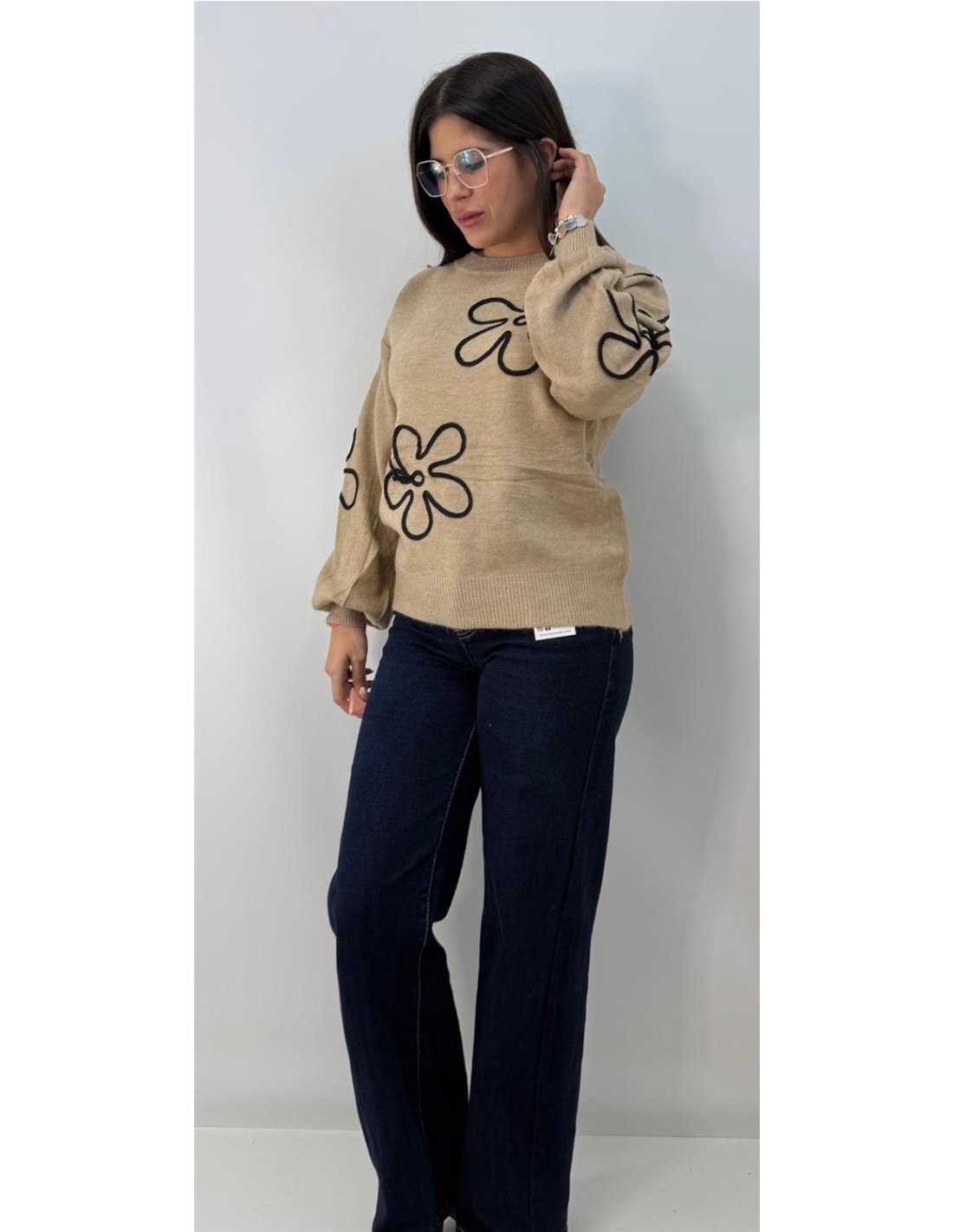 Jersey de punto de lana, con estampado flores.Talla unica 34 a 42 aprox