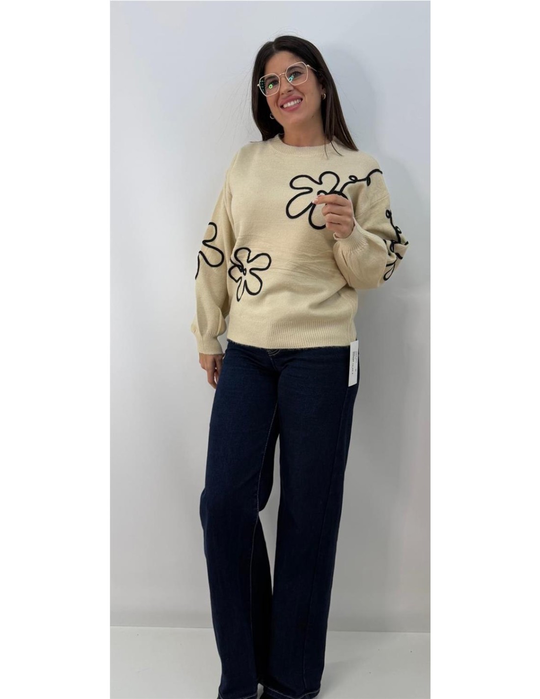 Jersey de punto de lana, con estampado flores.Talla unica 34 a 42 aprox