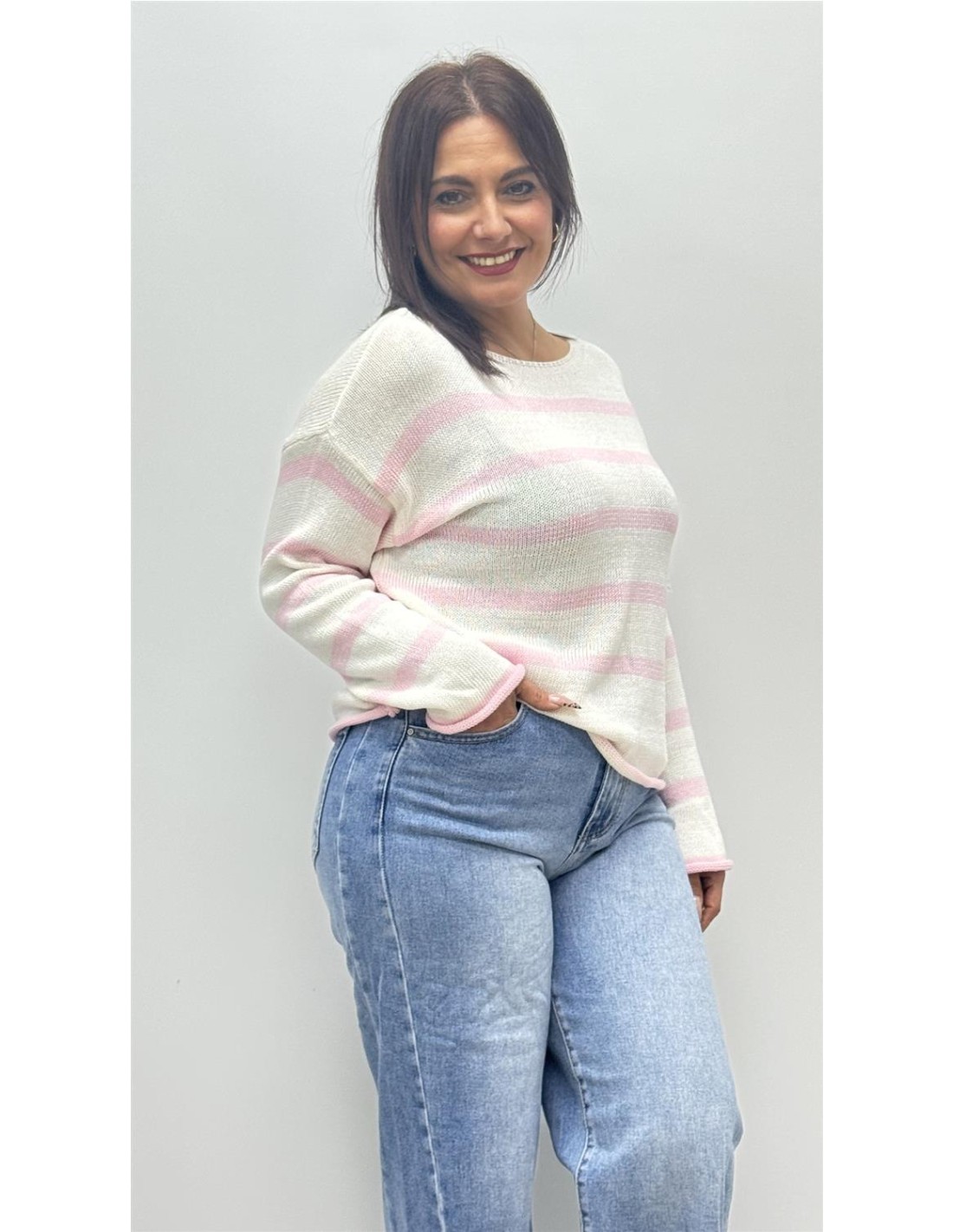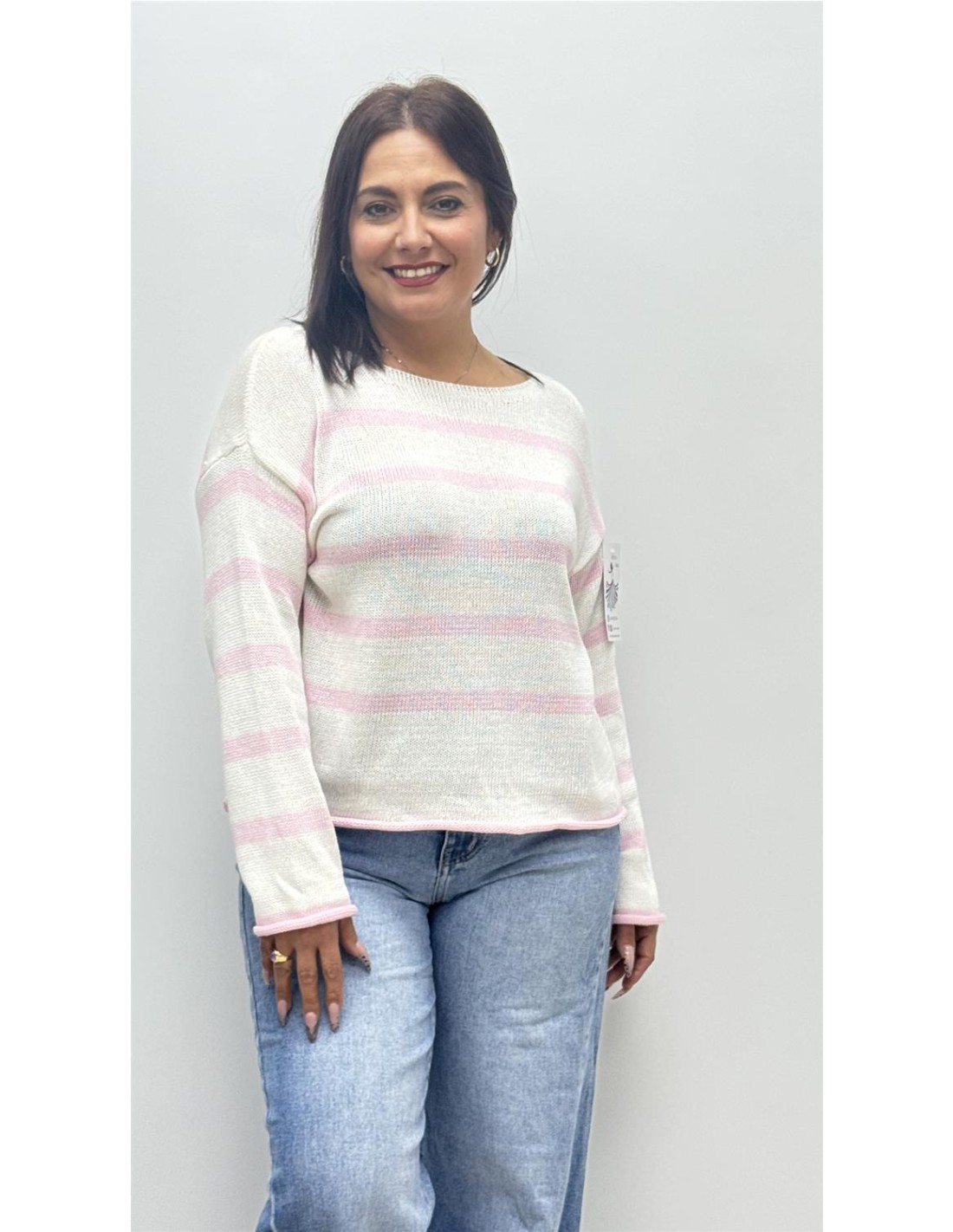 Jerse de hilo de rayas, es talla unica y te valdria desde la 36 hasta la 40.