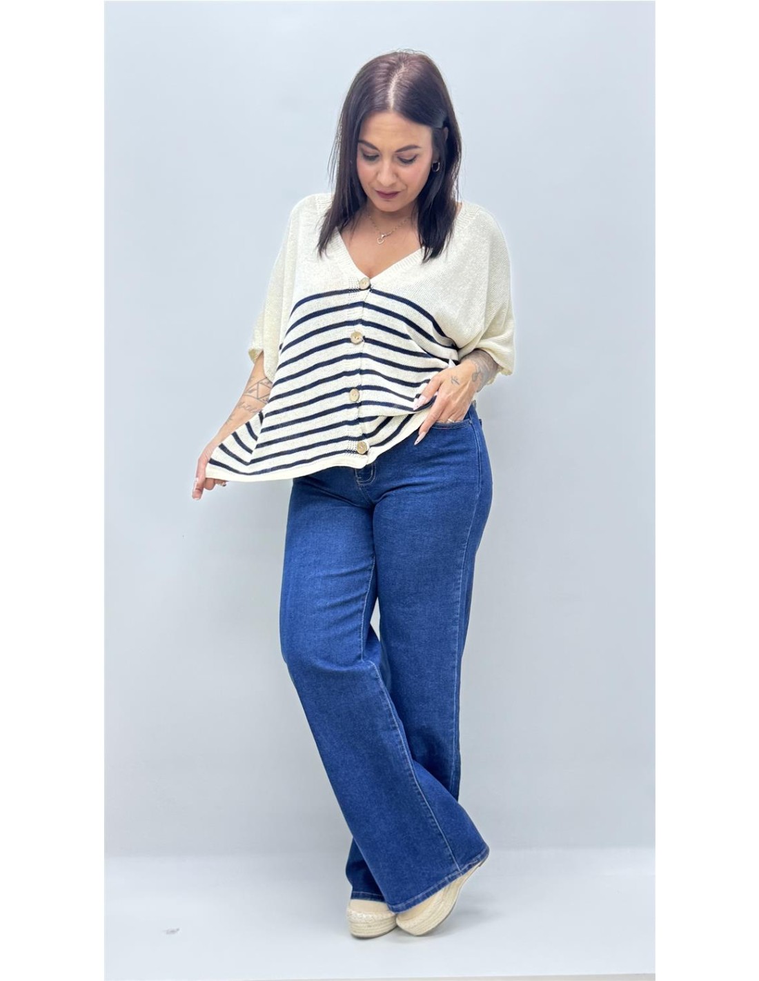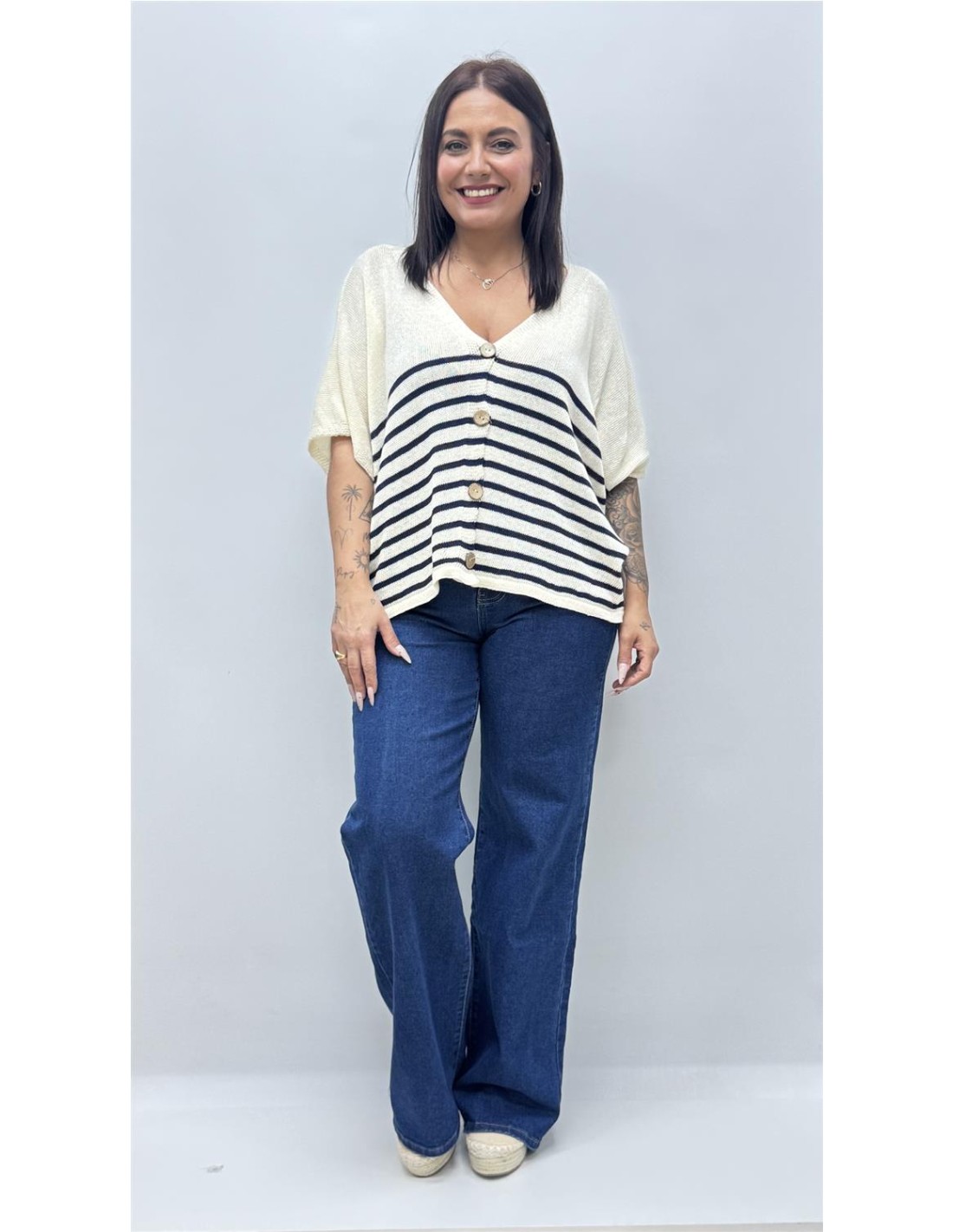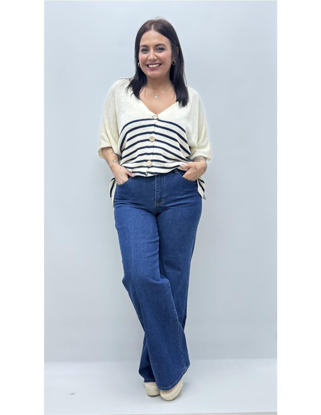 Rebeca de hilo bicolor oversize, es de talla unica dando aprox desde la 38 hasta la 46.