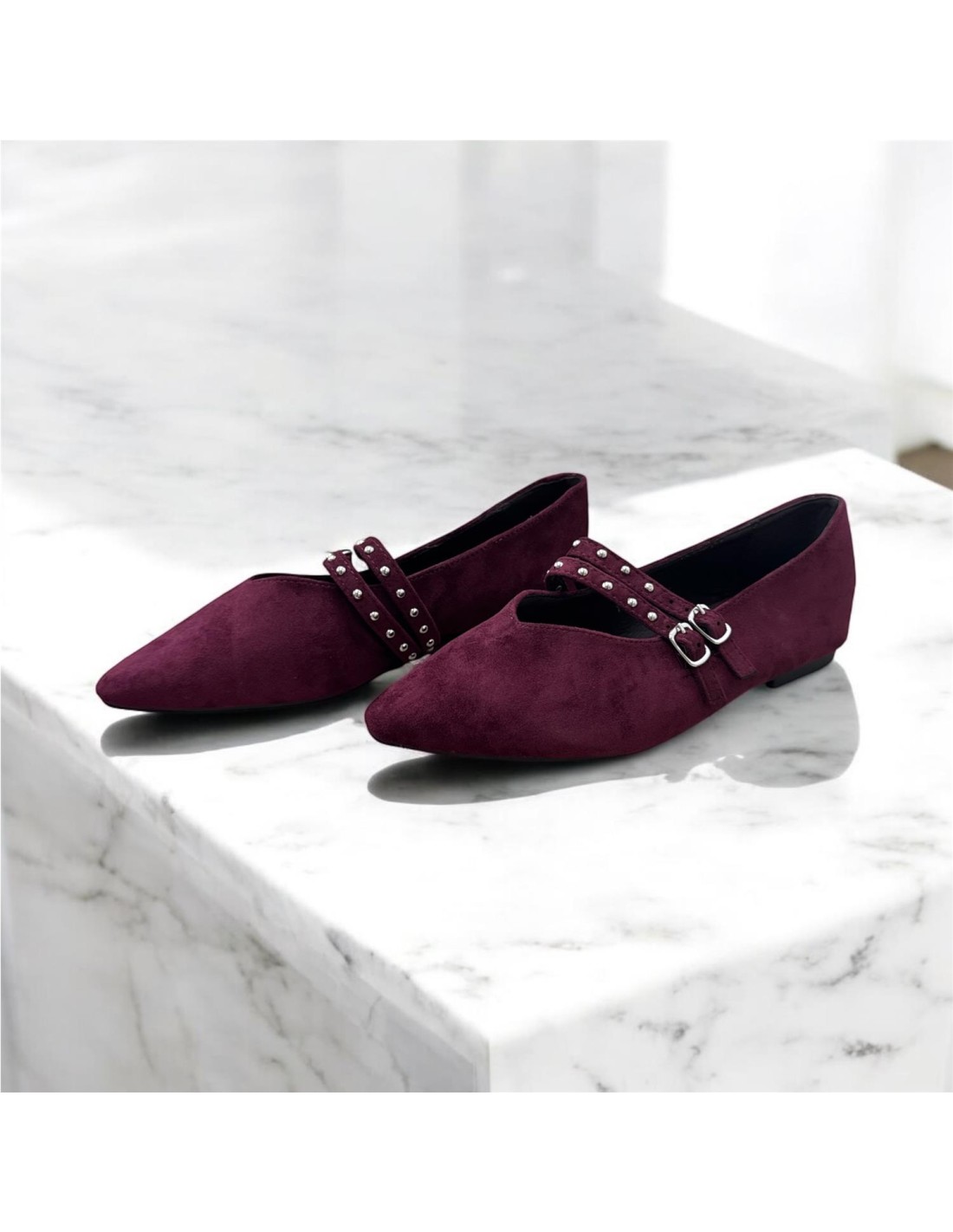 Manoletina de imitacion de serraje con tachuelas.
