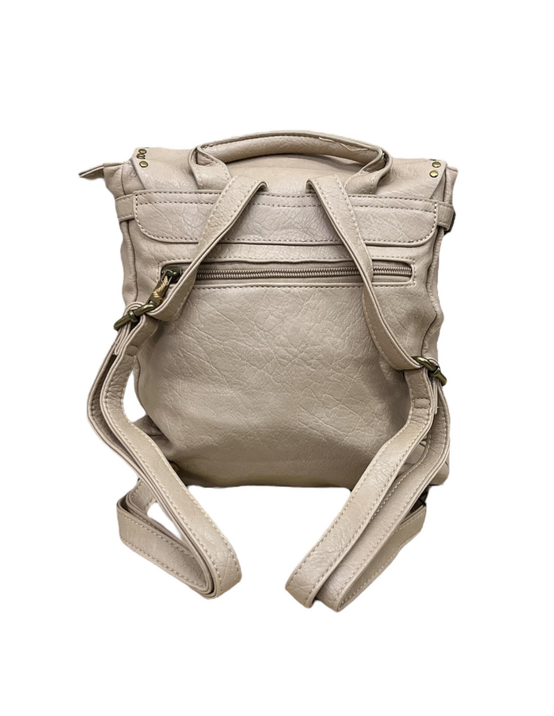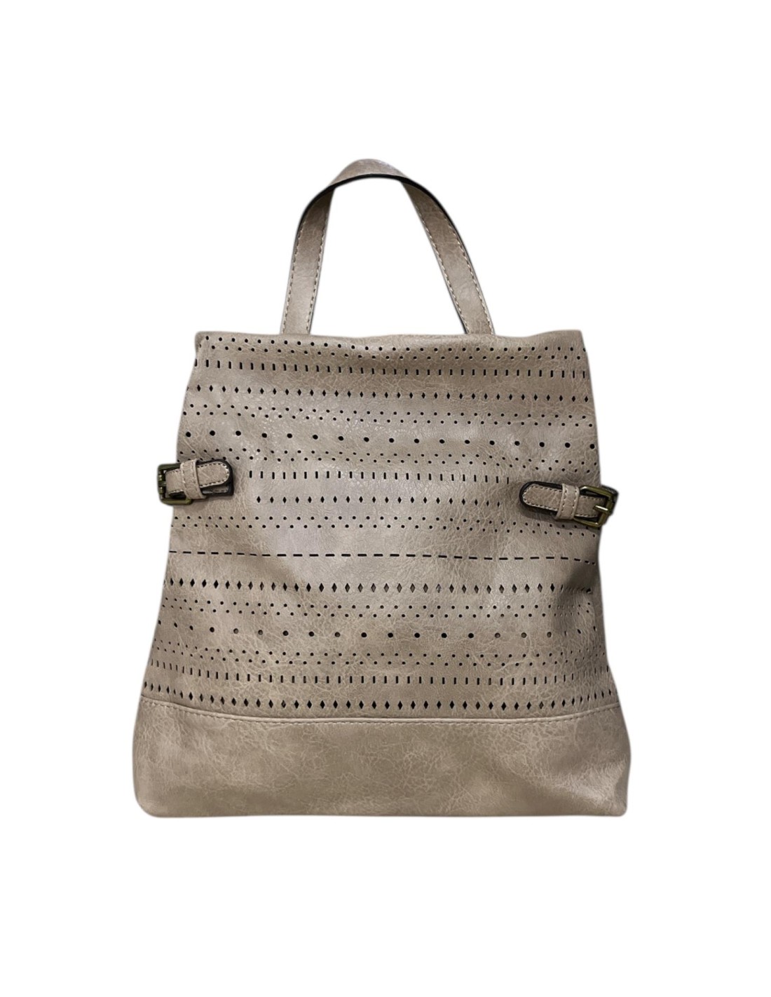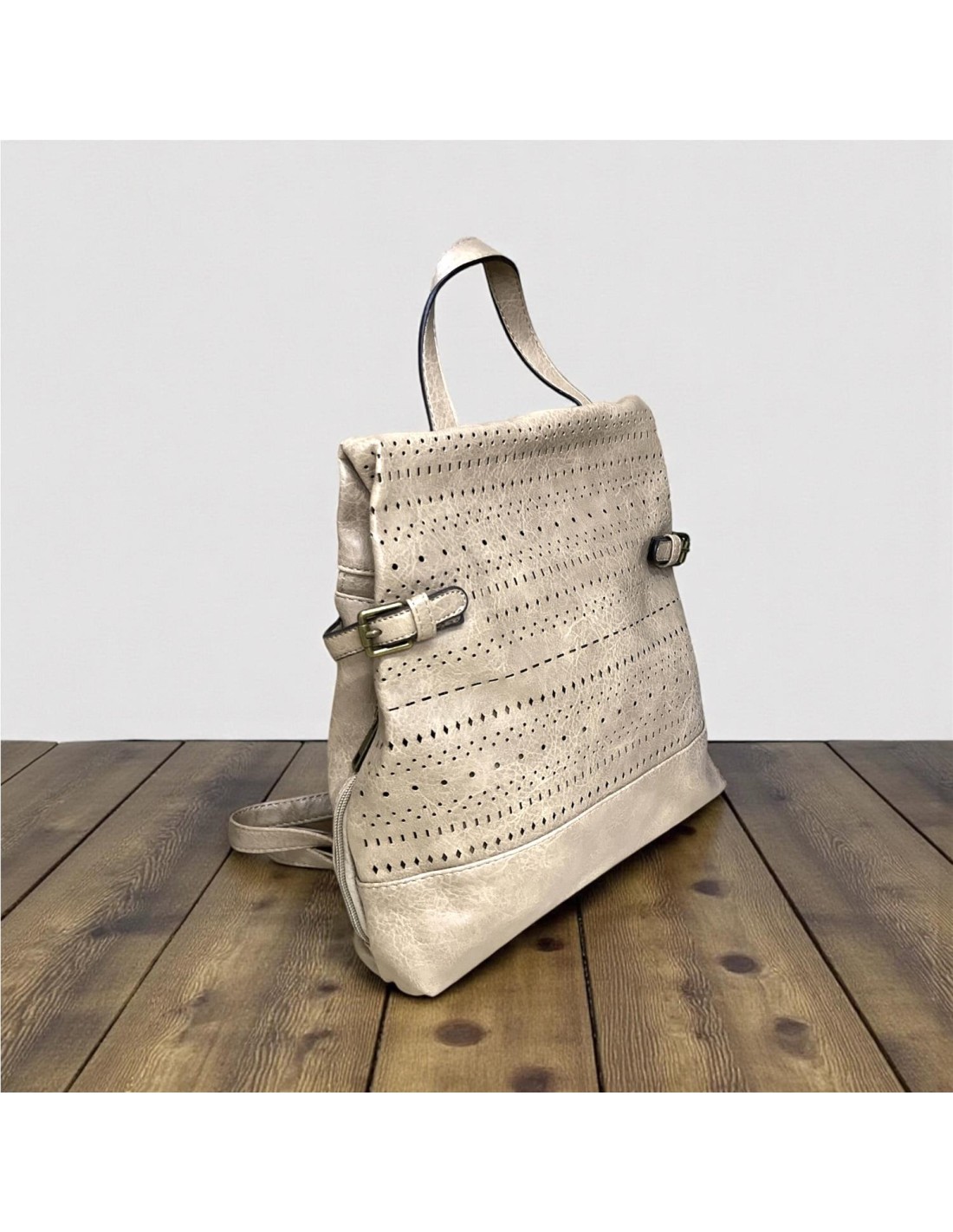 Mochila de napa troquelada antihurto. Medidas: 30 cm de ancho por 30 cm de alto