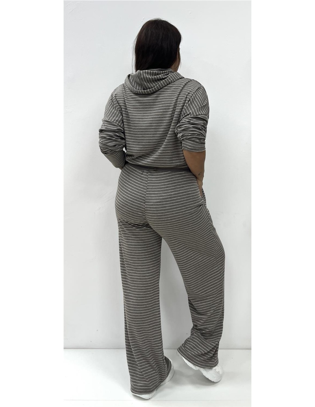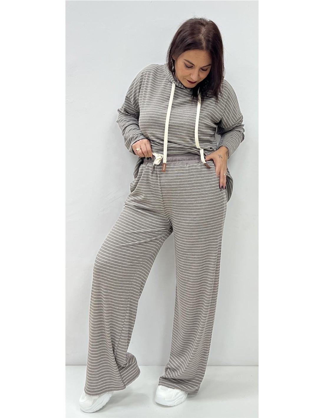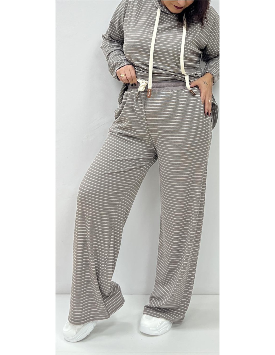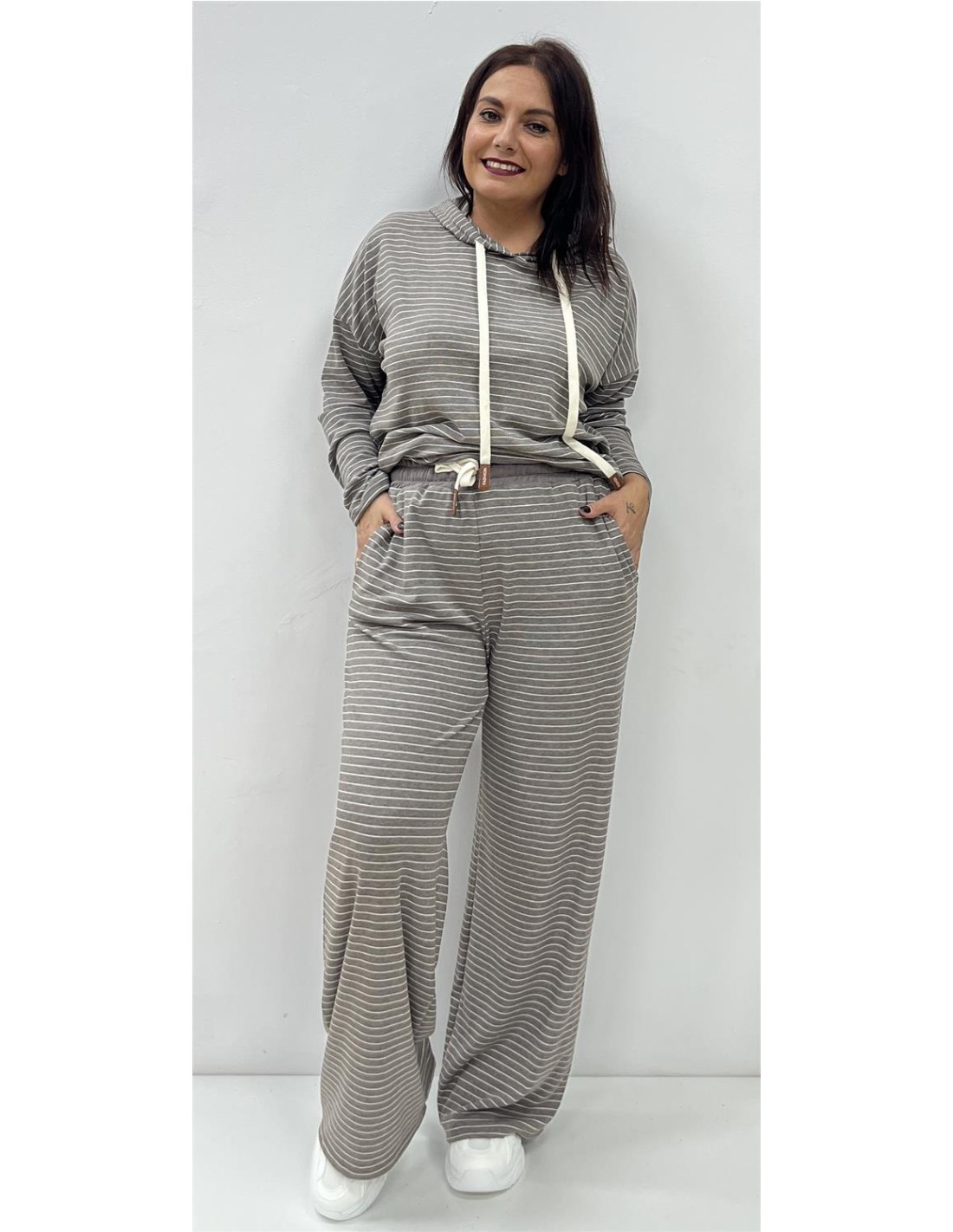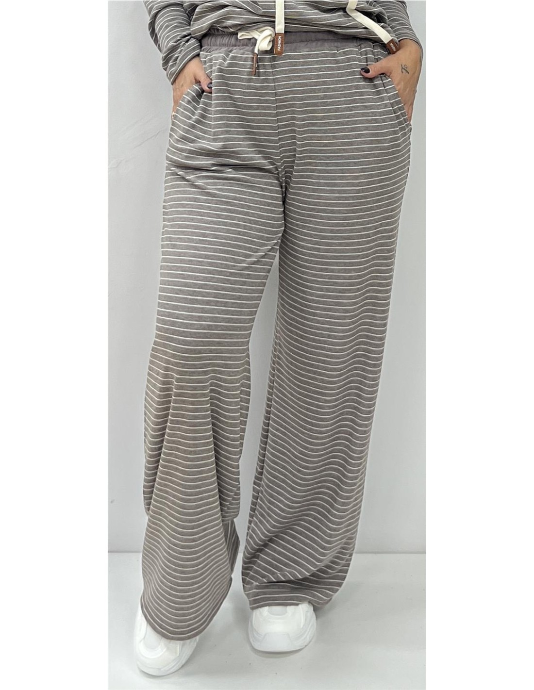 Pantalón sport chandal de rayas finas con cordón. Su talla puede dar desde una 38 hasta una 46. Combinado con la sudadera GRETA