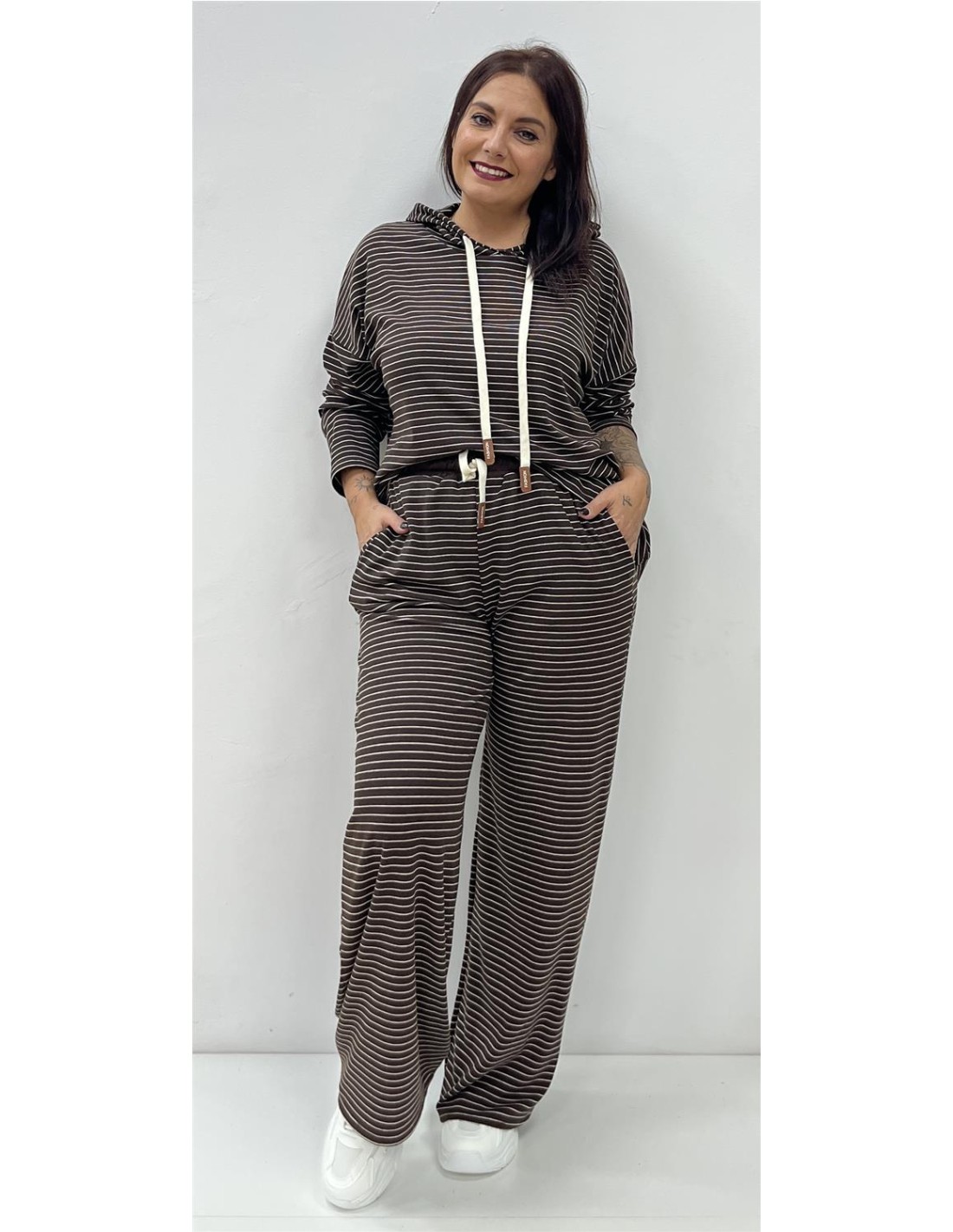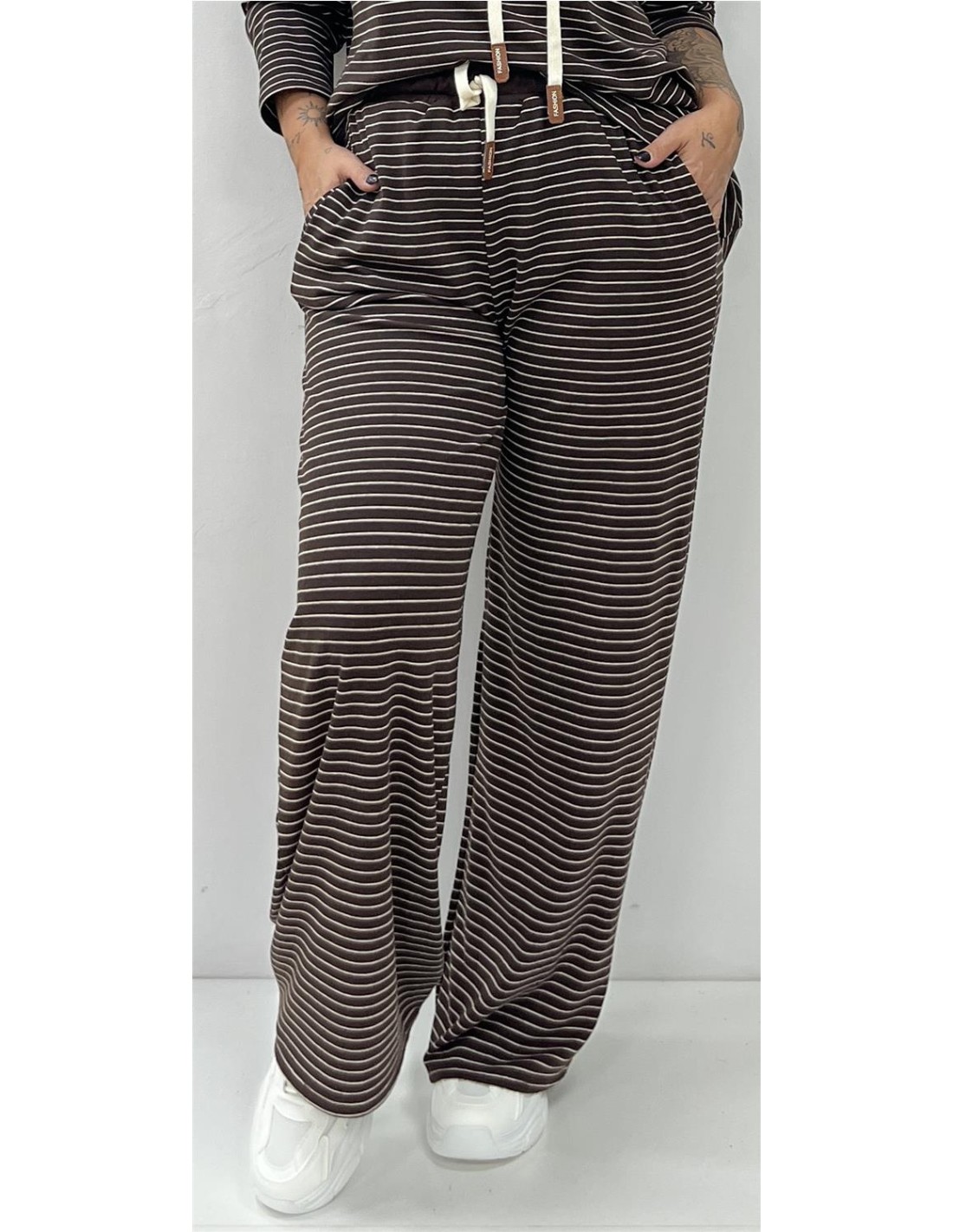Pantalón sport chandal de rayas finas con cordón. Su talla puede dar desde una 38 hasta una 46. Combinado con la sudadera GRETA