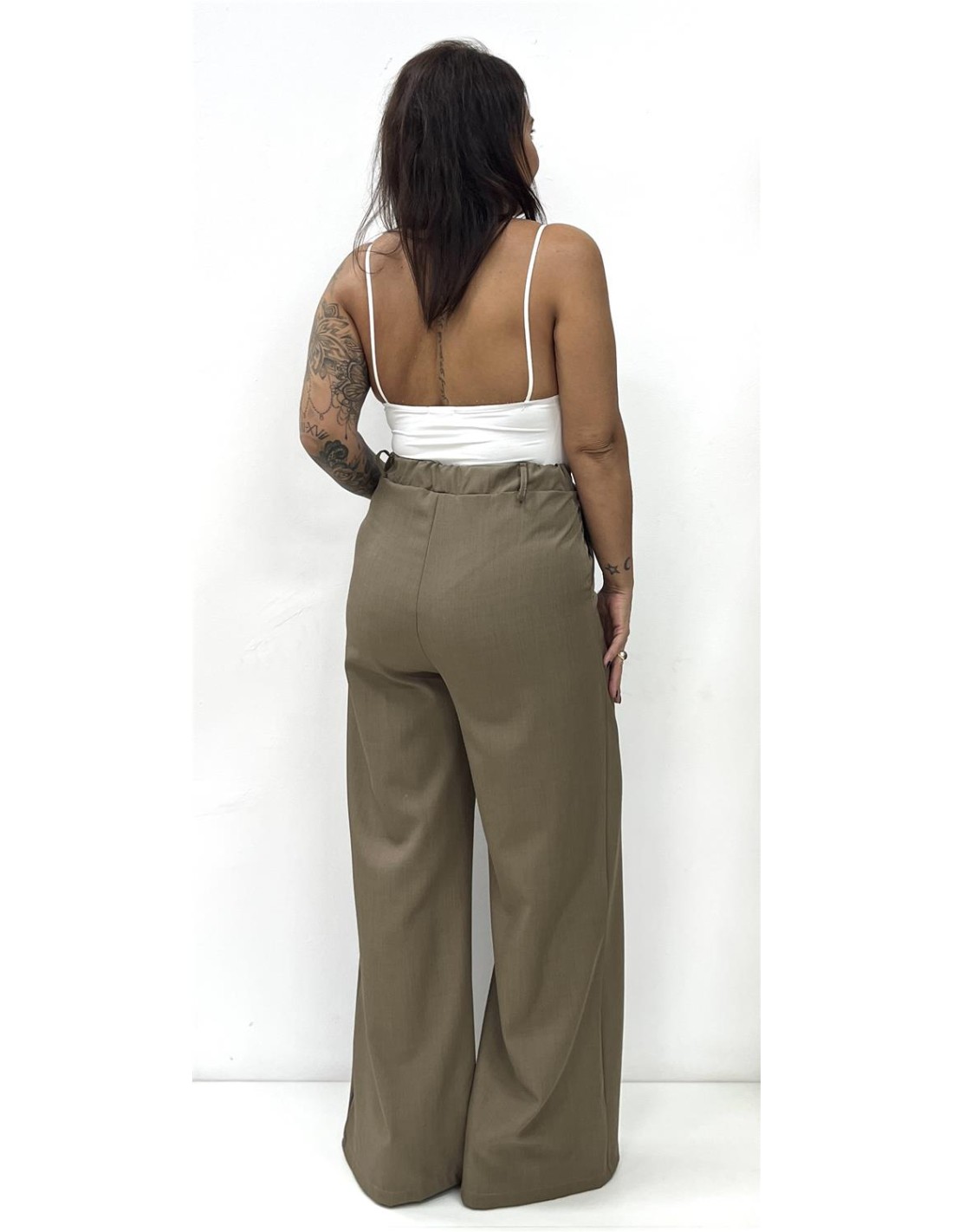 Pantalón recto con pinzas. Su talla puede dar desde una 36 hasta una 40. Combinado con el body HERMILA