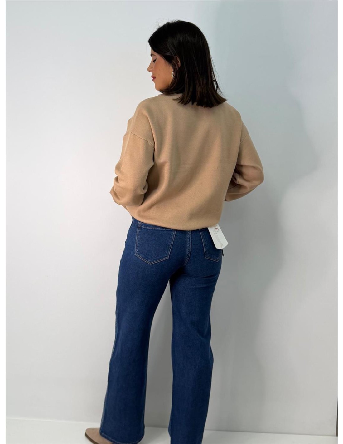 Vaquero de brillo, con licra, pata ancha. Sus Tallas van desde la S hasta la XXL y tallan muy justo. Combinado con el Jr82-219.