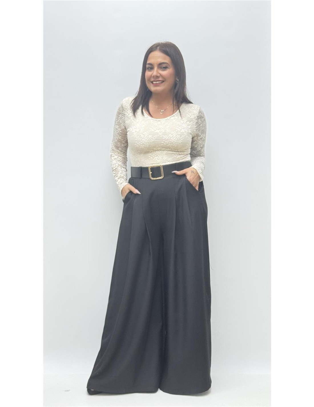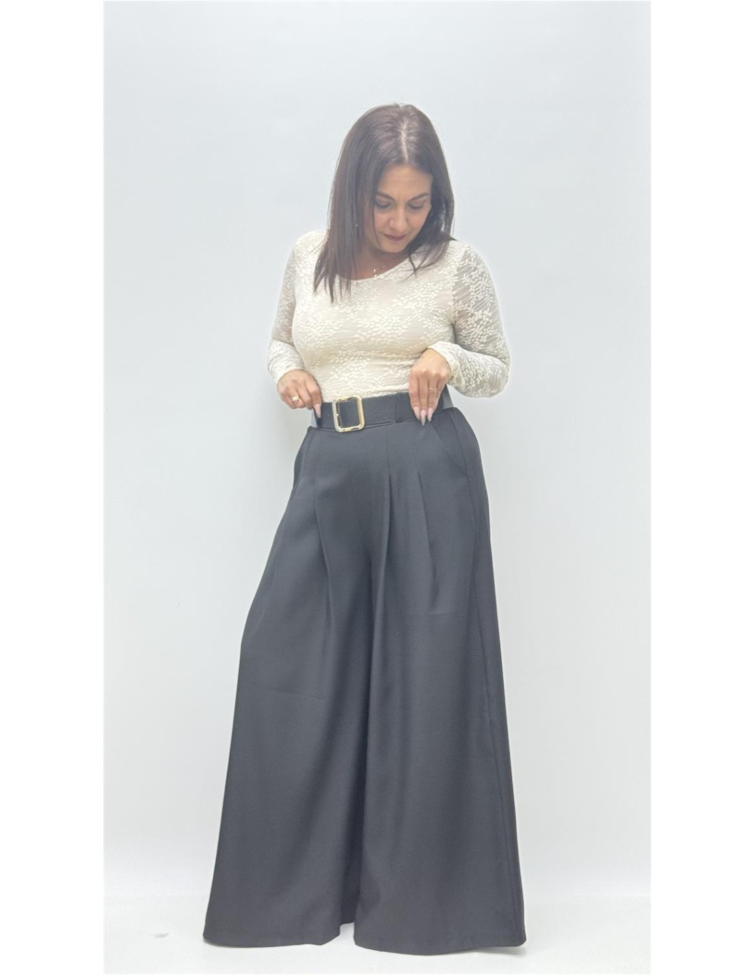 Pantalon palazzo con cinturon, es de talla unica y da desde la 36 hasta la 44.