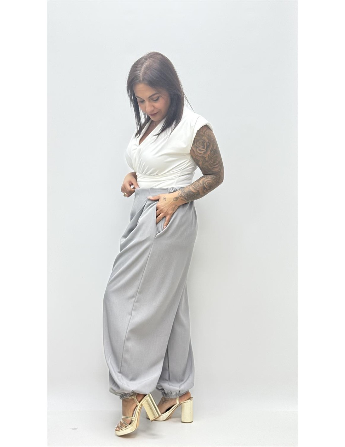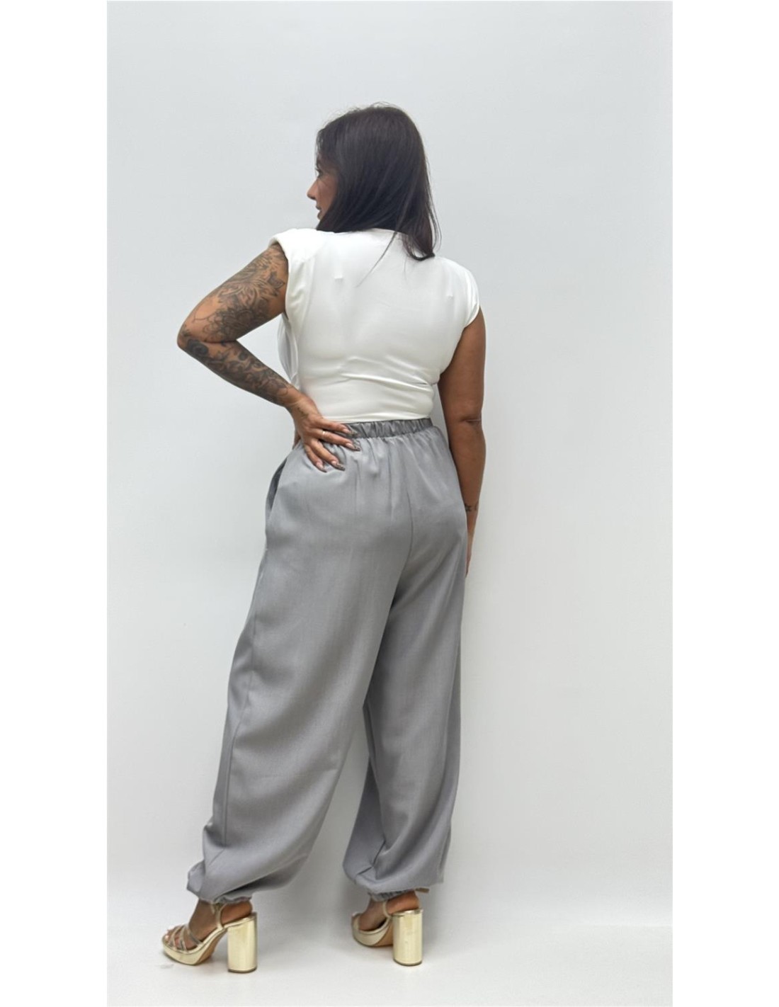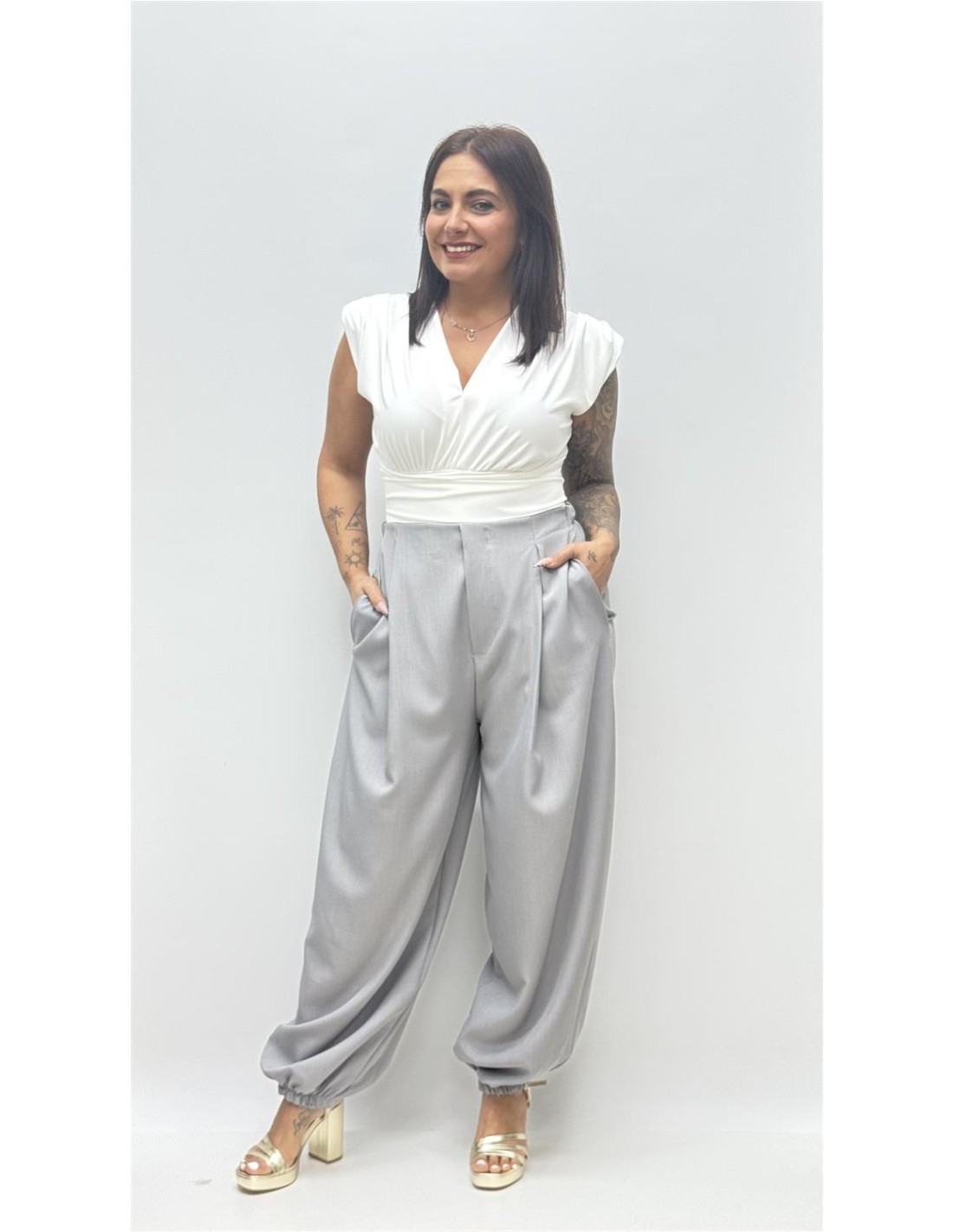 Pantalon de efecto globo con frunce bajo, es de talla unica y da desde la 36 hasta la 42.