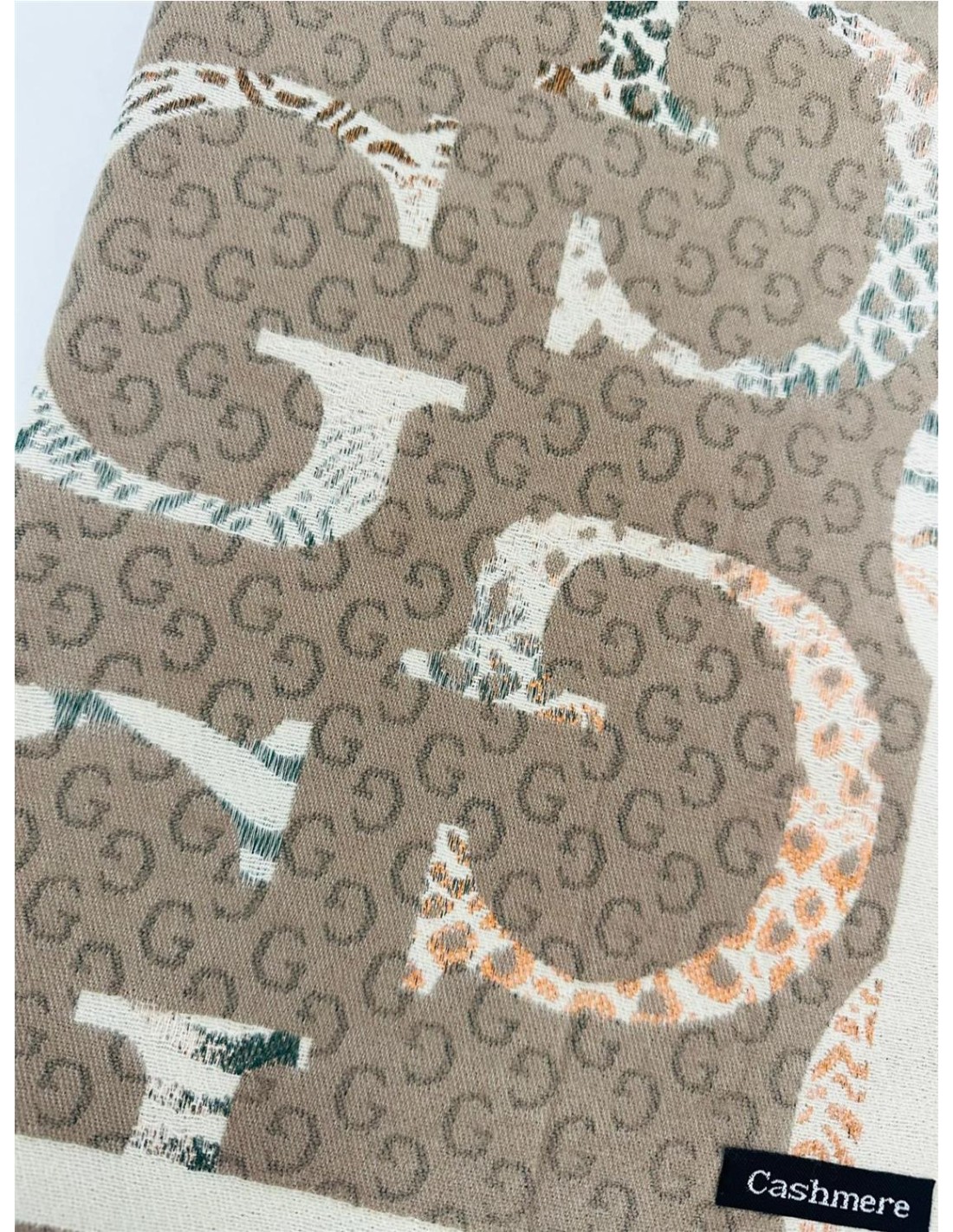 Pañuelo con estampado de G, su medida es de largo 190 cm y de ancho 65 cm.