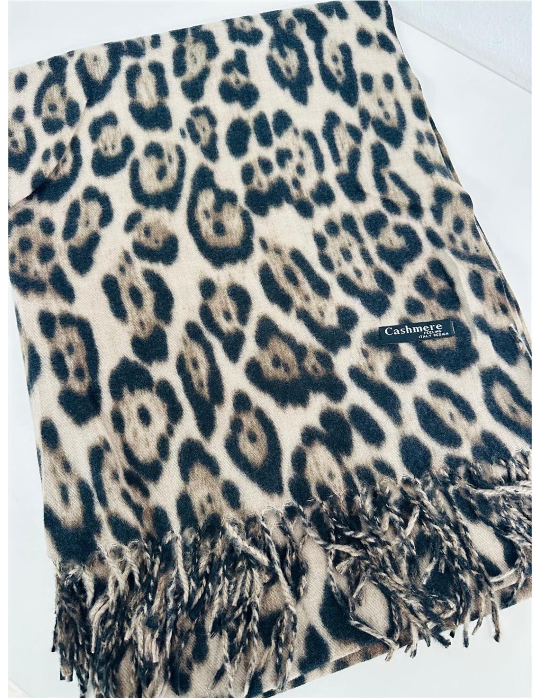 Pañuelo de leopardo, su medida es de largo 186 cm y de ancho 70 cm.