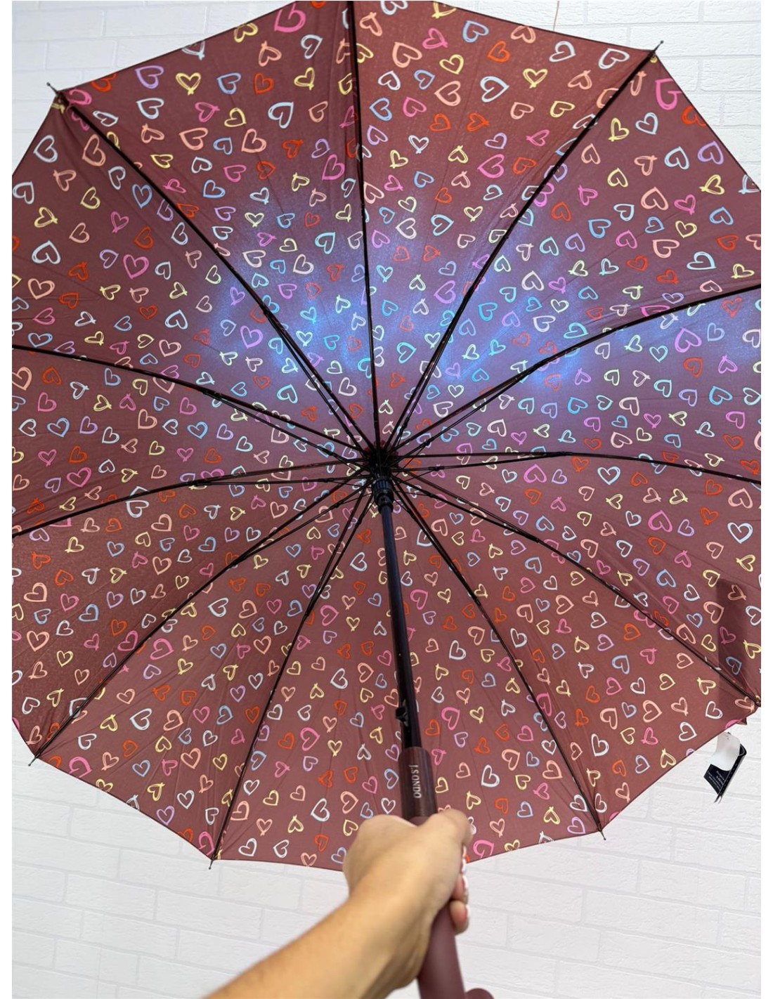 Antiviento, con 12 barillas, con puño, estampado de corazones.