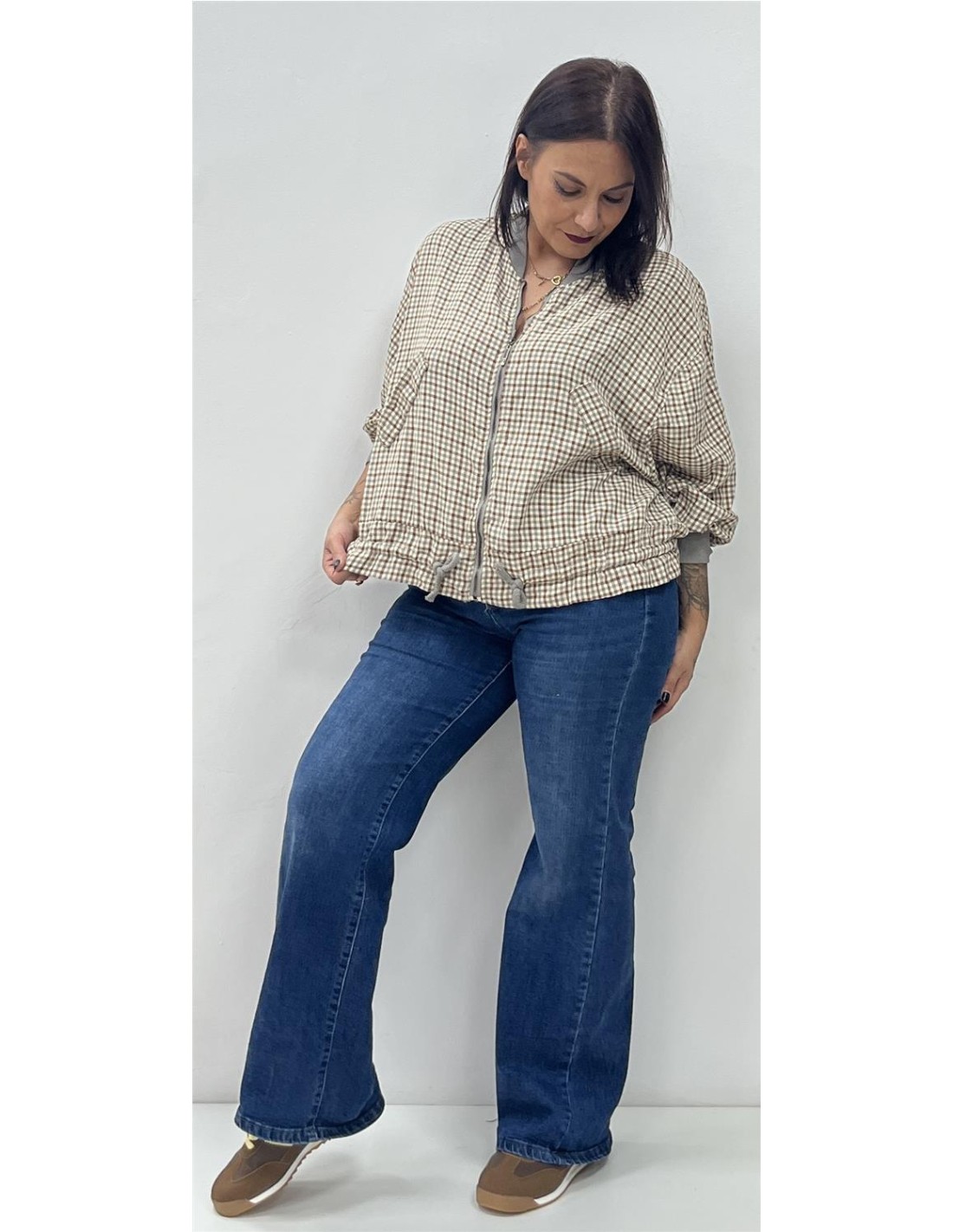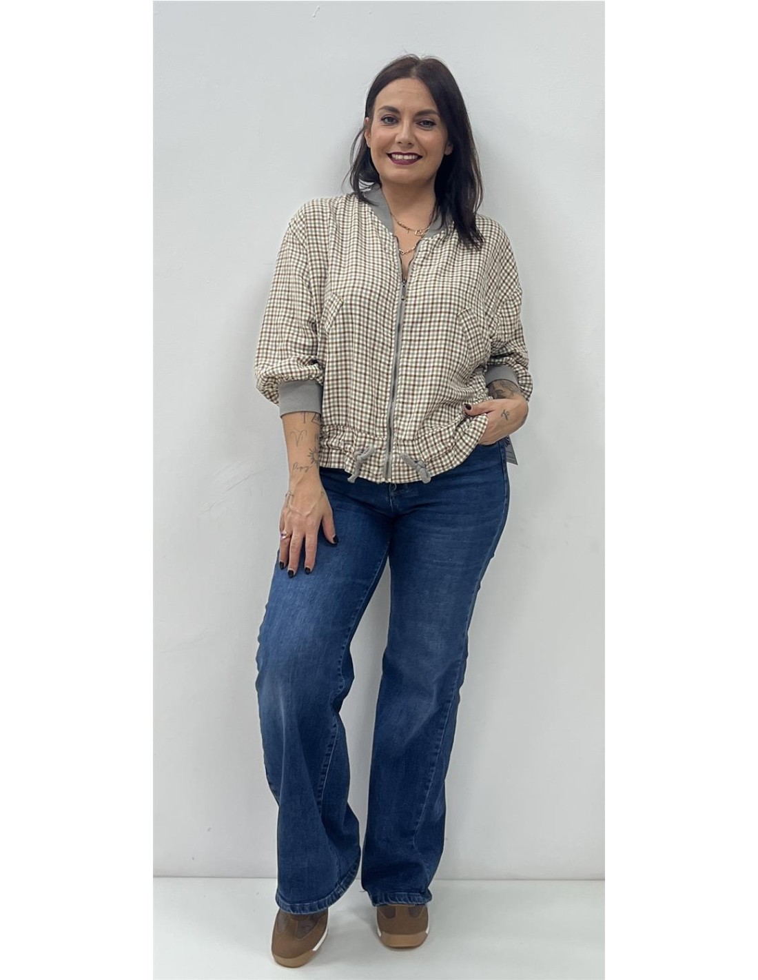 • SUDADERA CUADROS BEIG