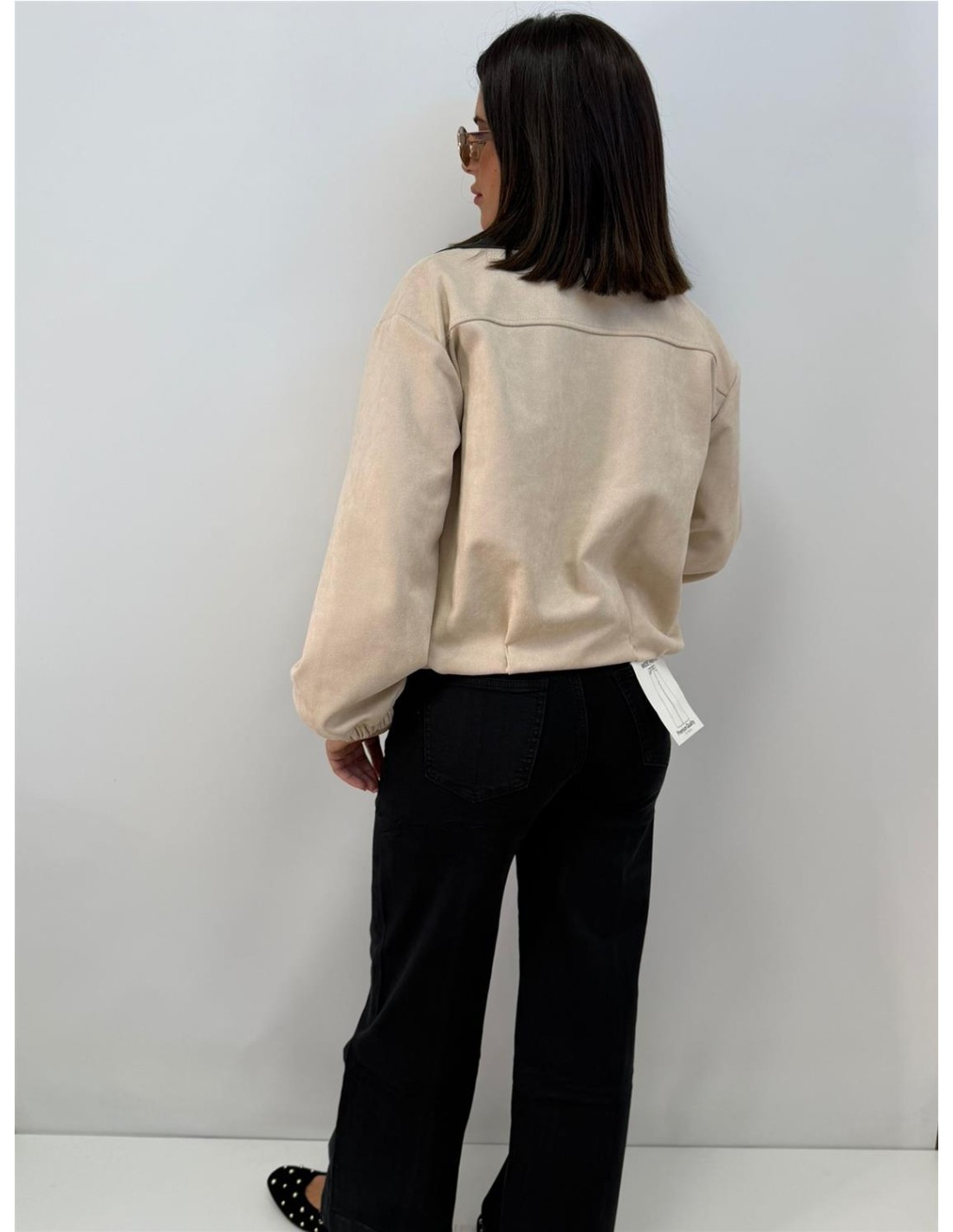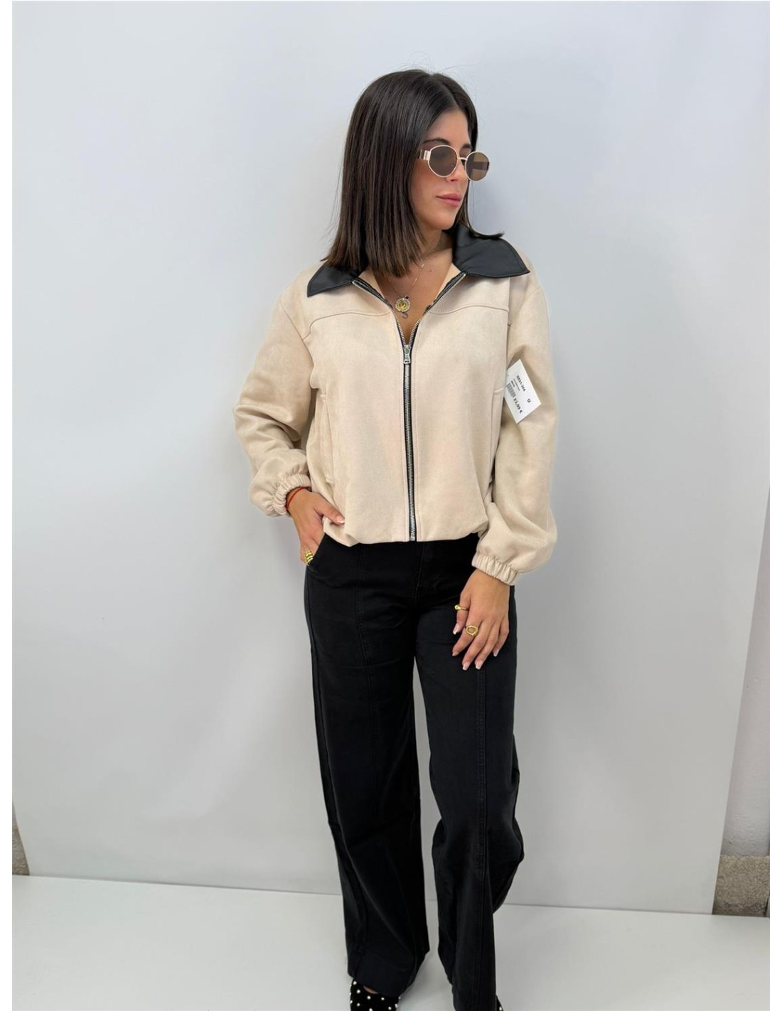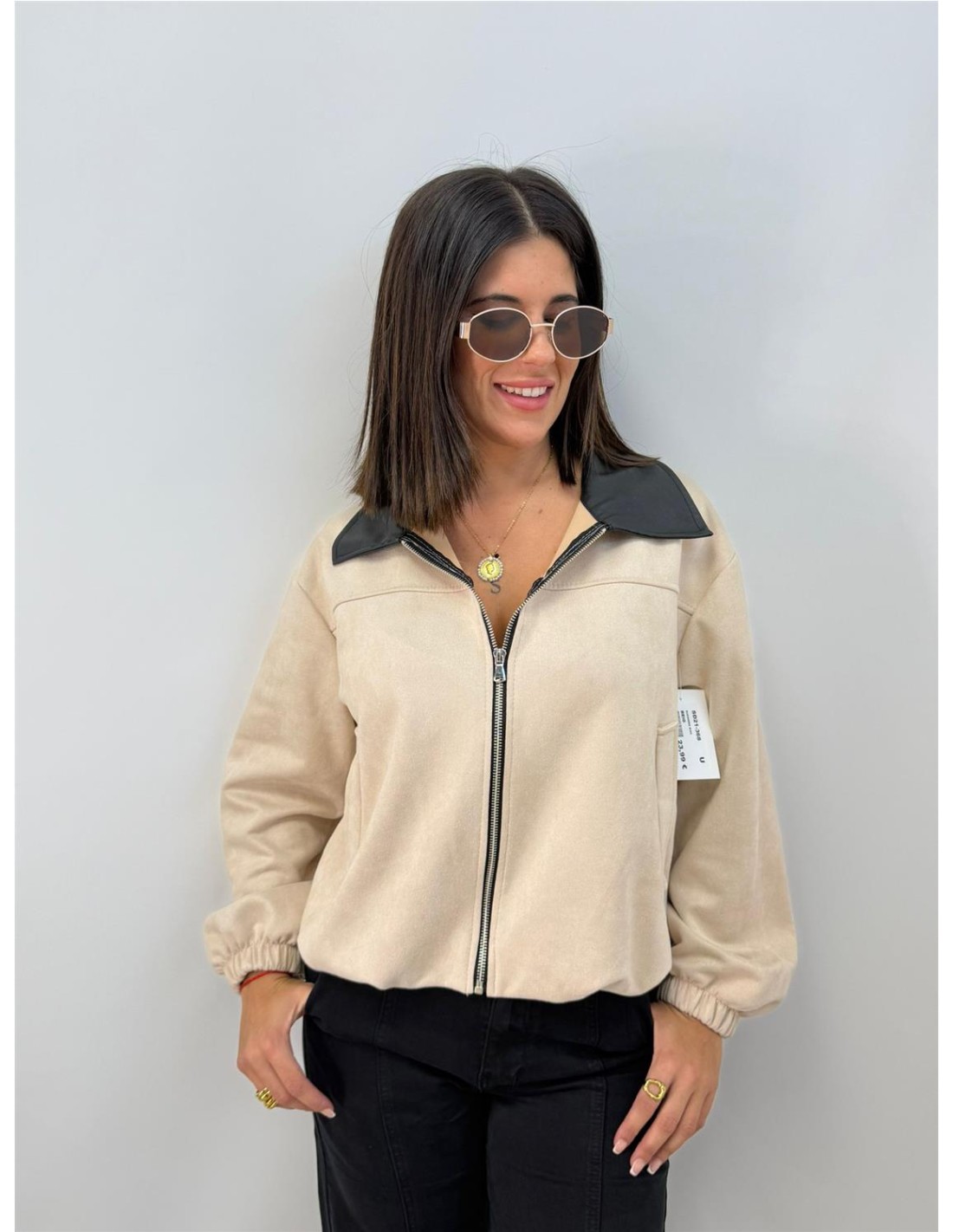 De abtelina, con cremallera, mangas largas, con puños elasticos. Su talla va desde una 34 hasta una 42 aproximadamente.