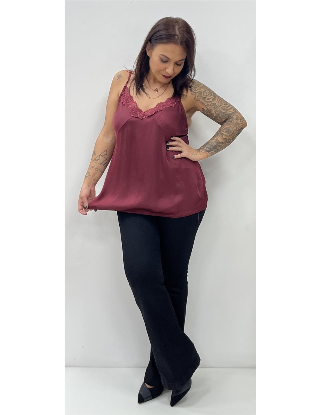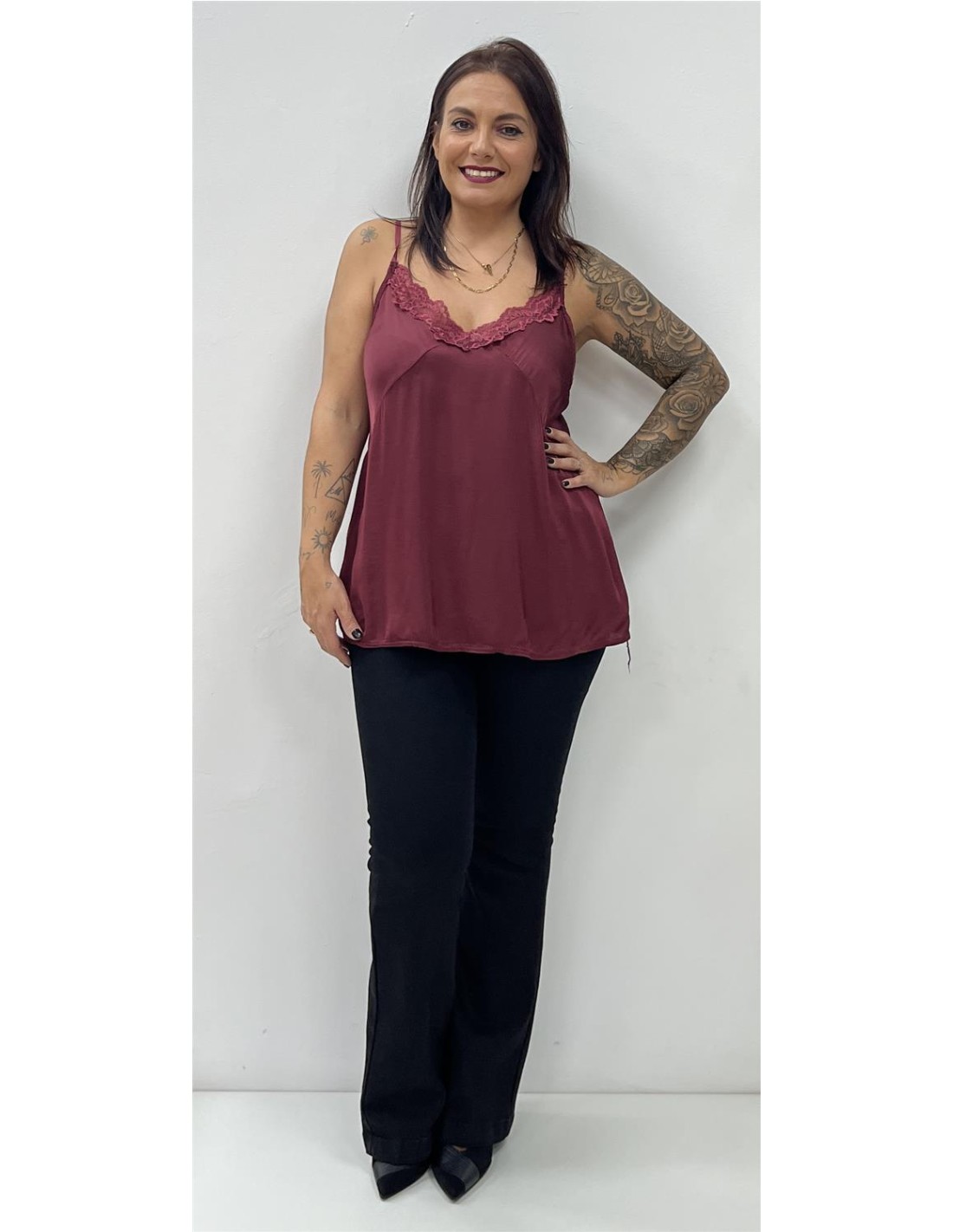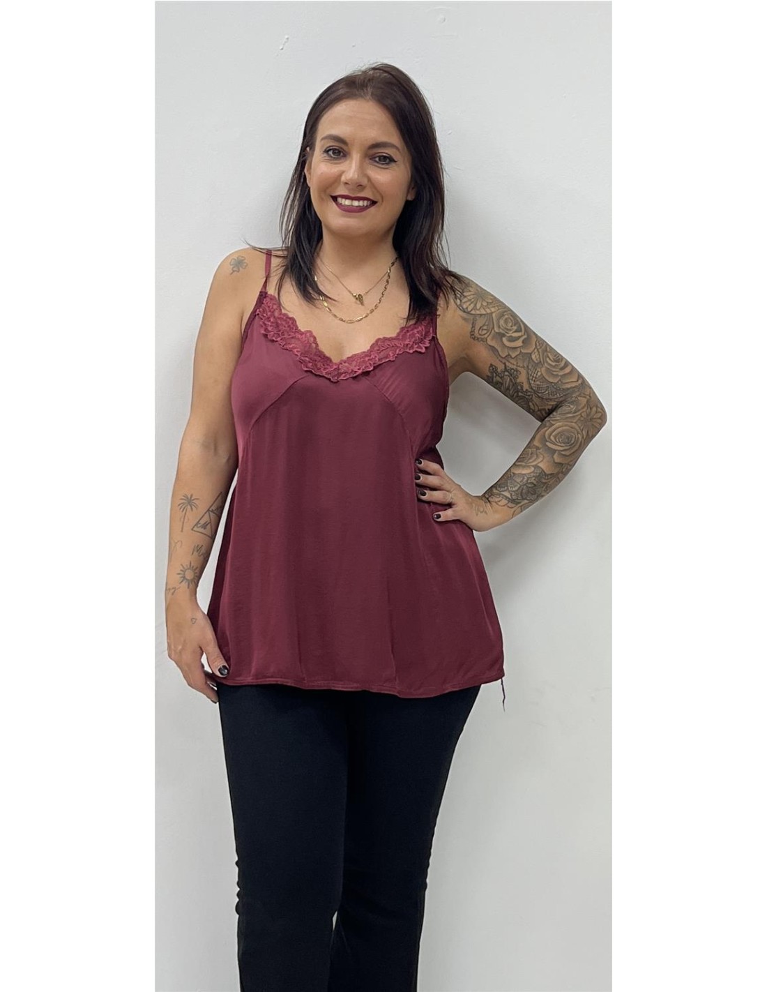 Lencero con encaje y tirantas. Su talla puede dar desde una 38 hasta una 44. Combinado con el pantalón ZAFIRA y el bolso BL45-1013