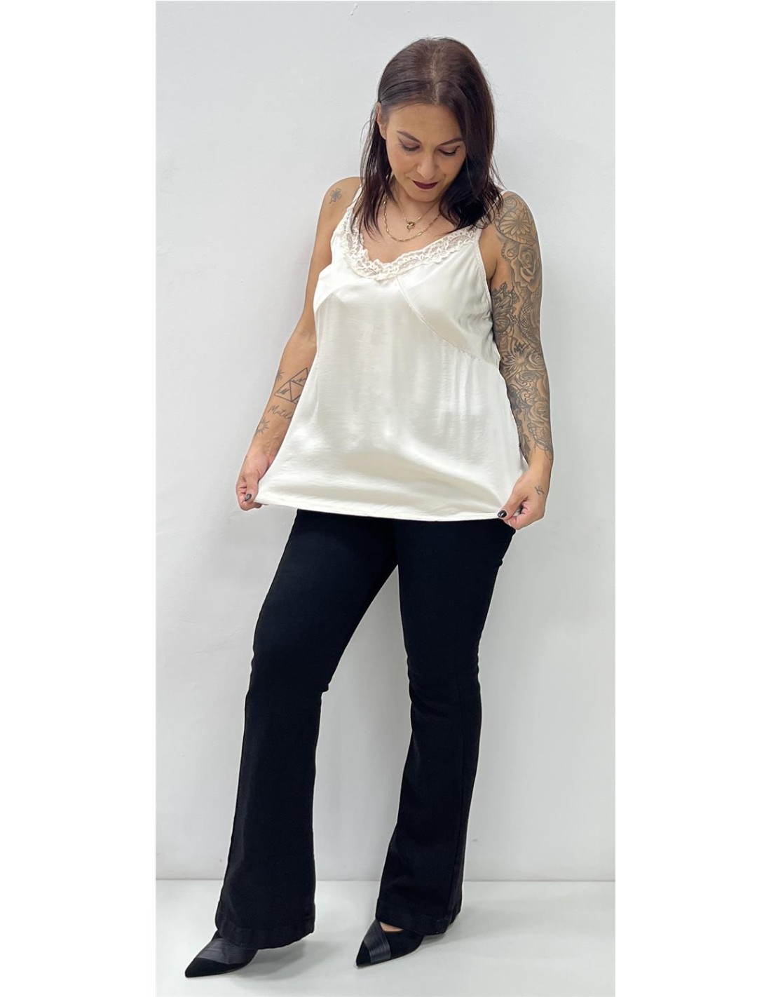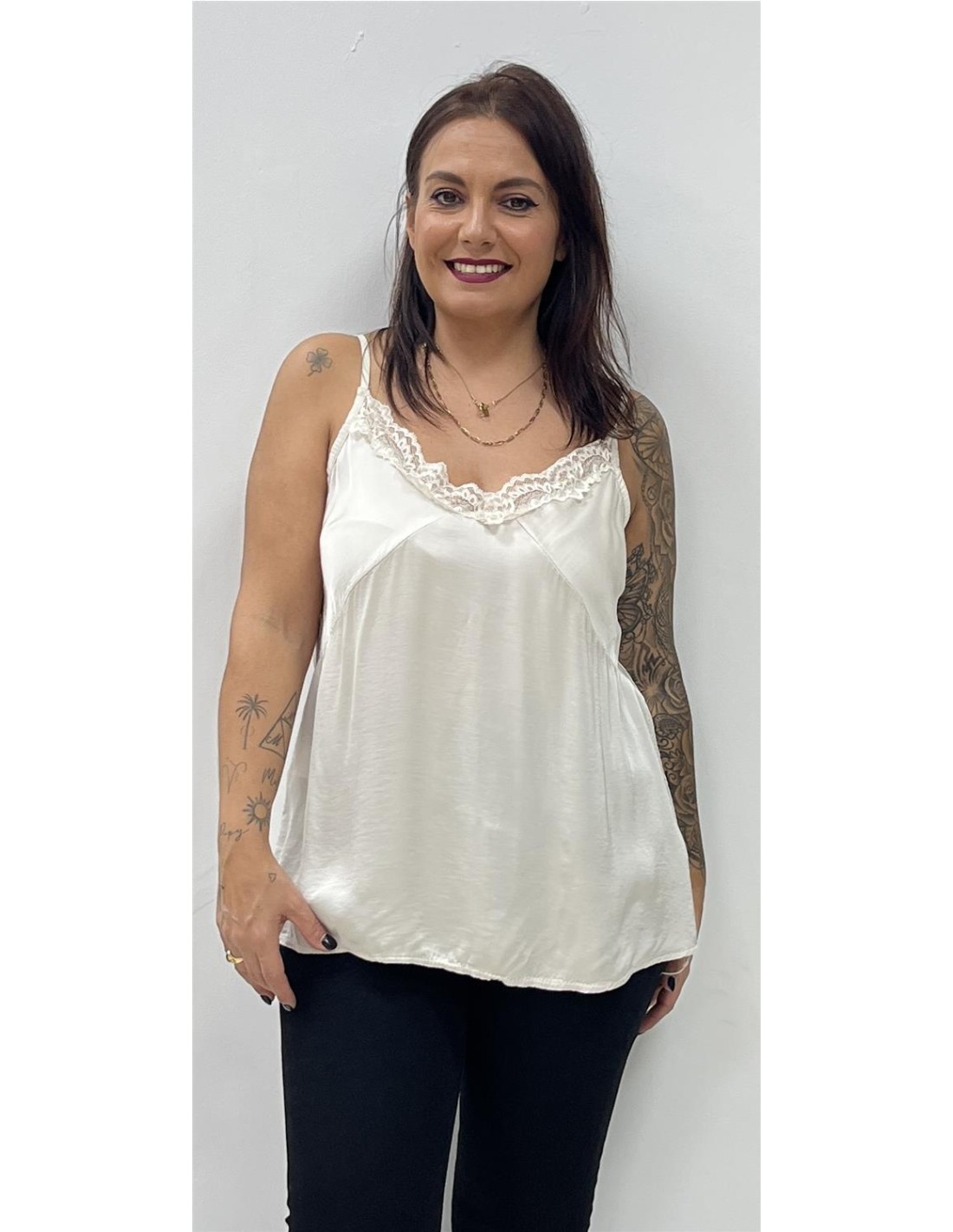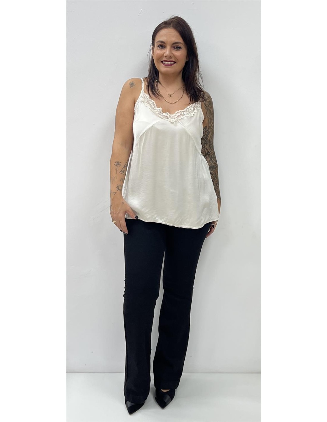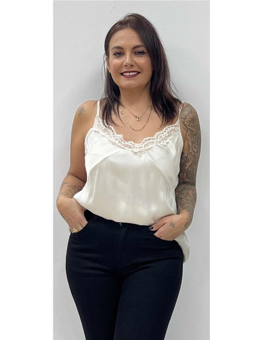 Lencero con encaje y tirantas. Su talla puede dar desde una 38 hasta una 44. Combinado con el pantalón ZAFIRA y el bolso BL45-1013