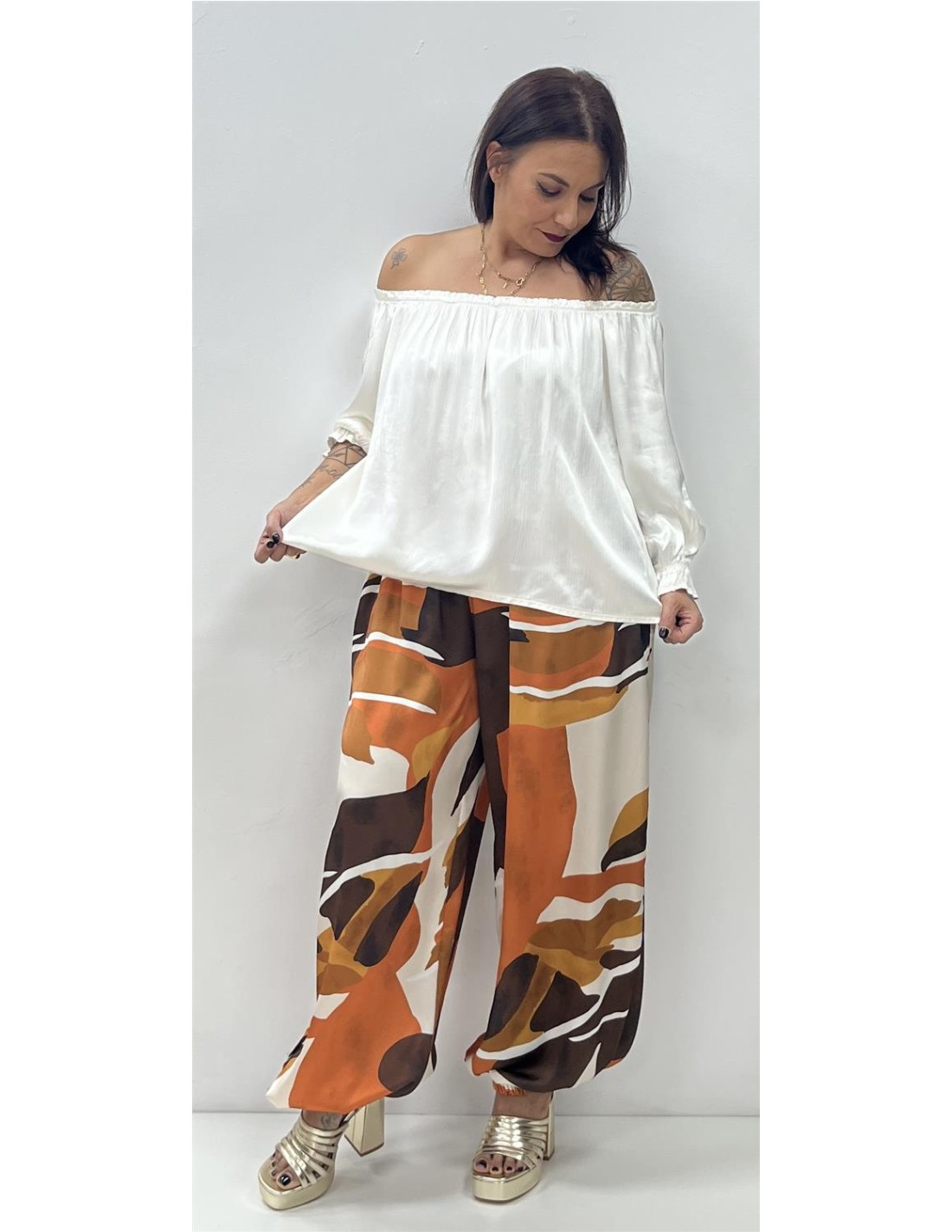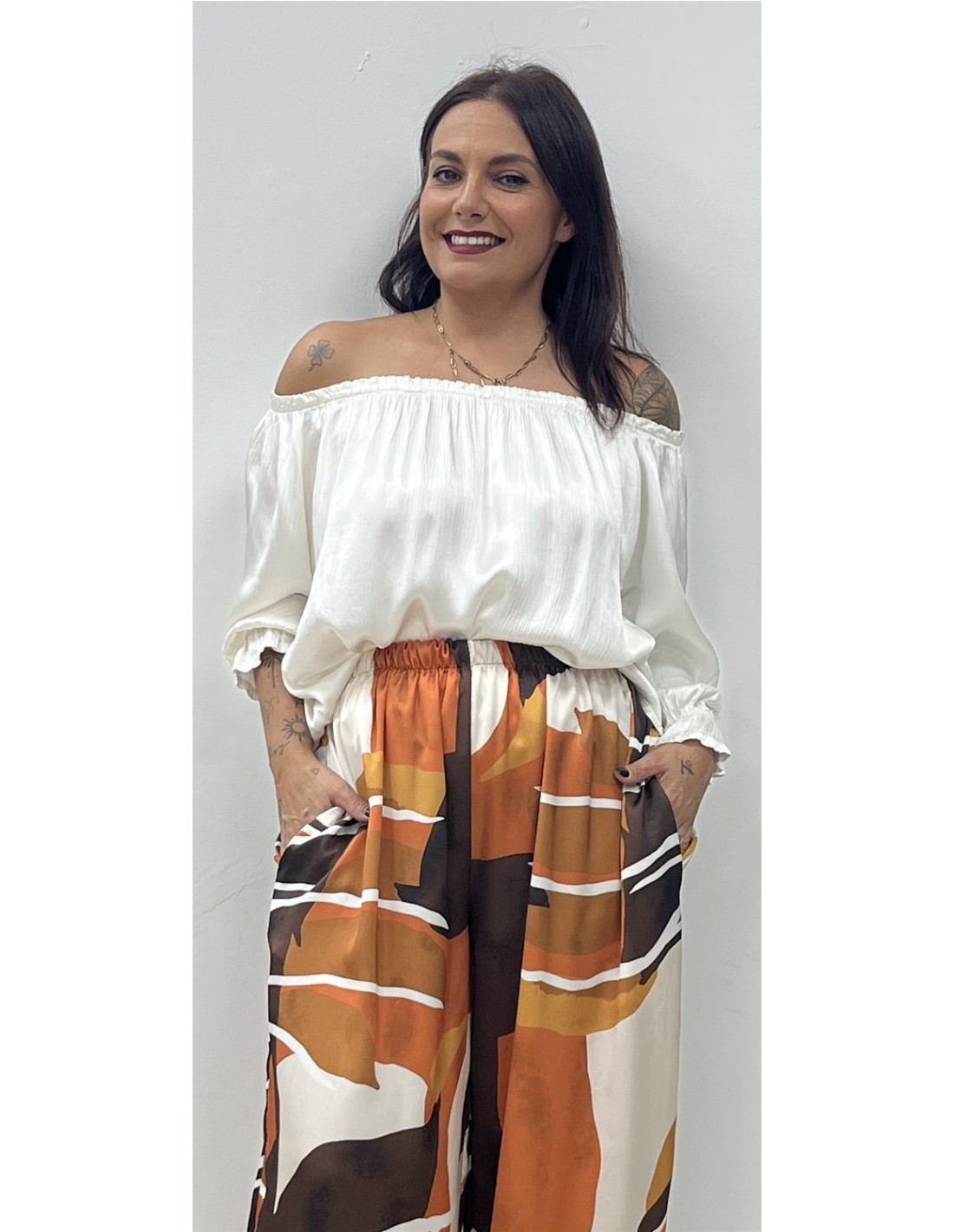 Top satinado cuello barco. Su talla puede dar desde una 38 hasta una 44. Combinado con el tacón TC213