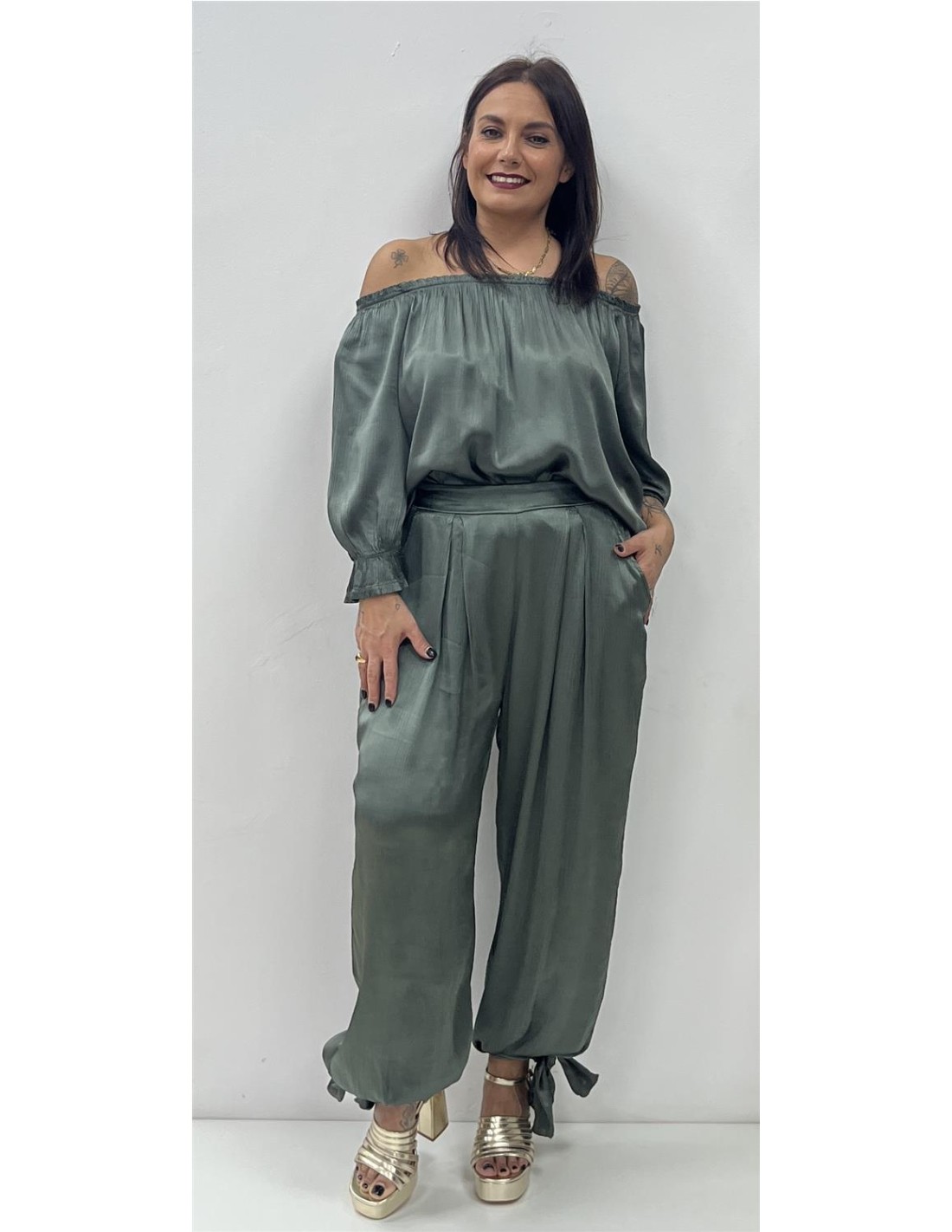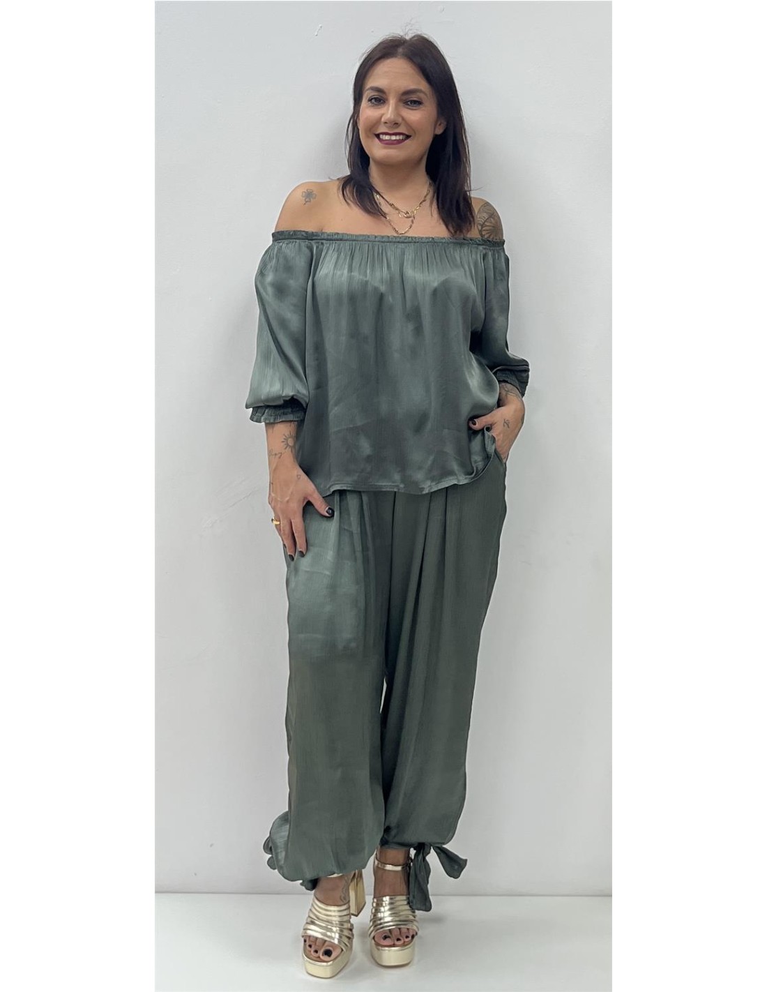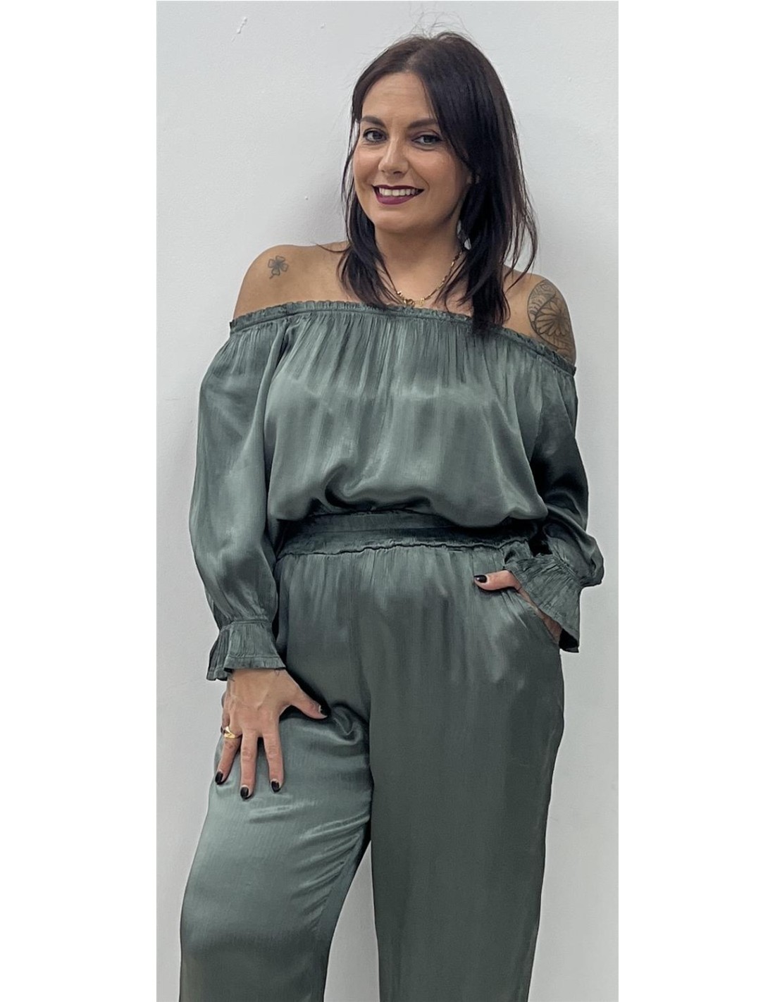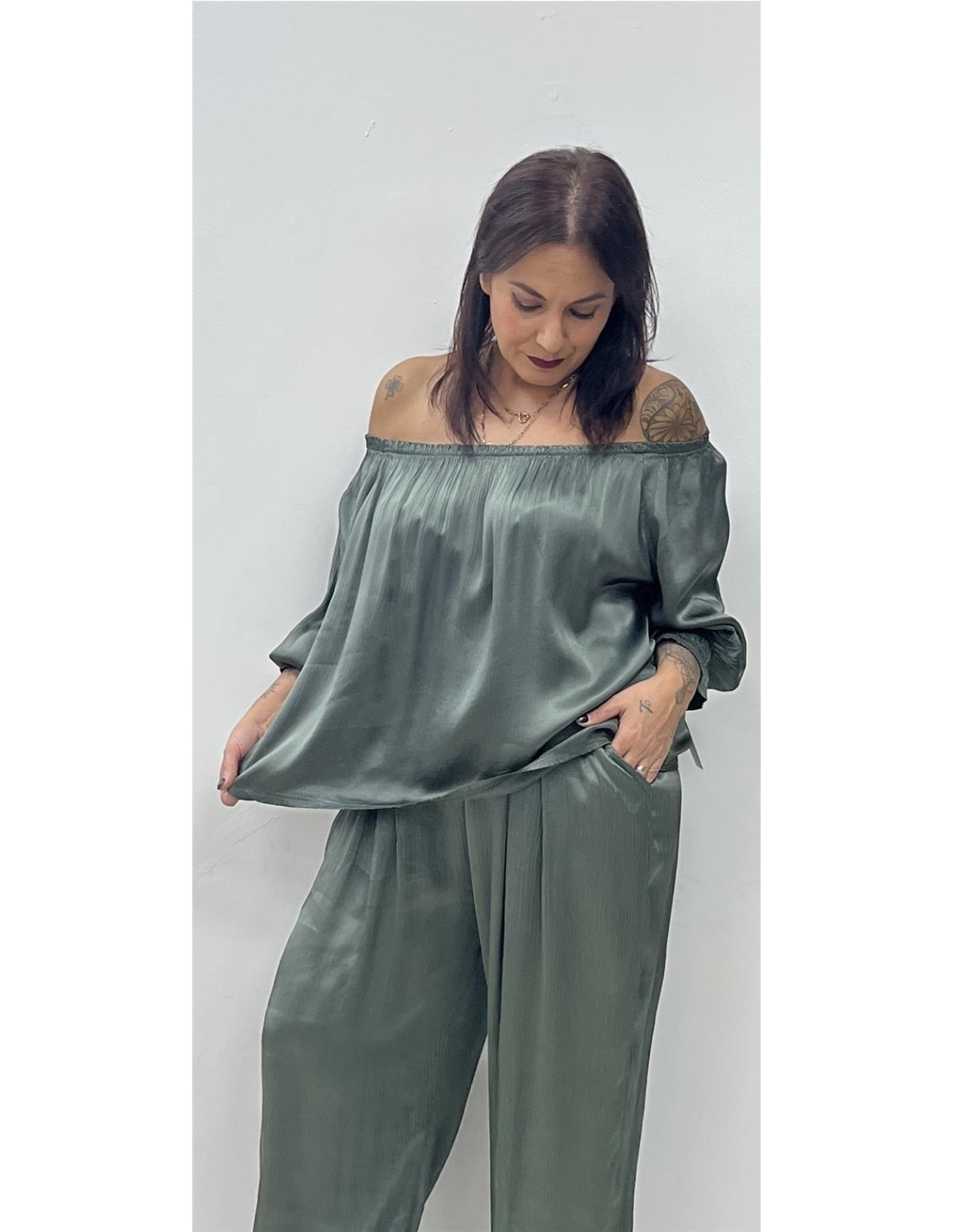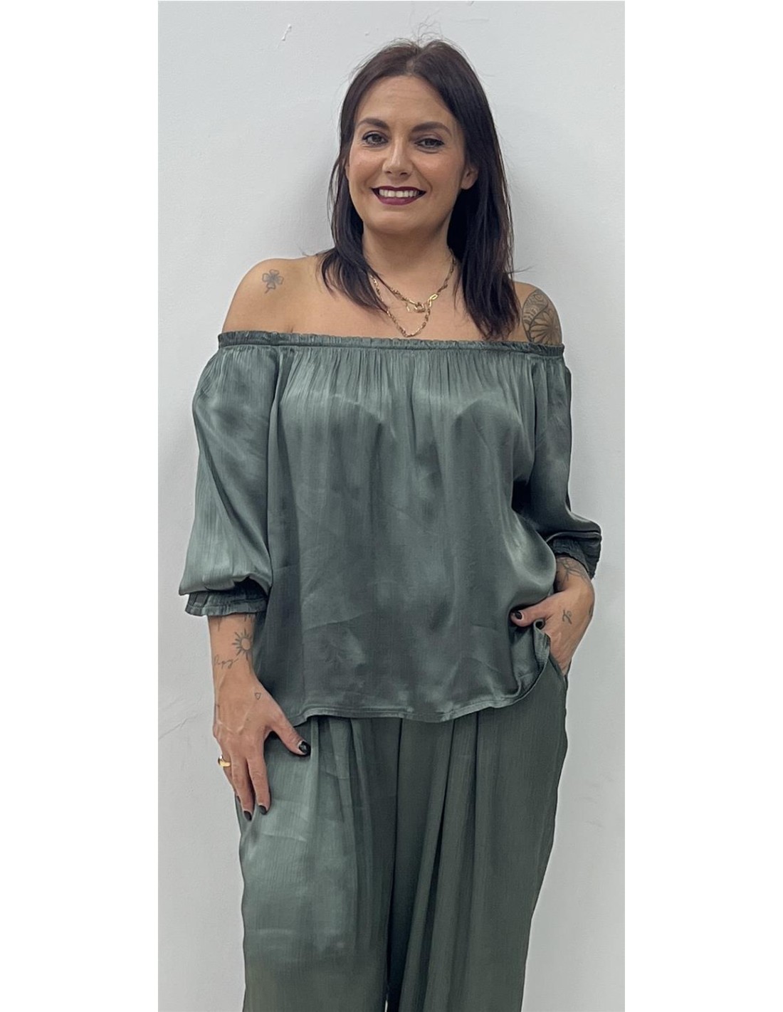Top satinado cuello barco. Su talla puede dar desde una 38 hasta una 44. Combinado con el tacón TC213