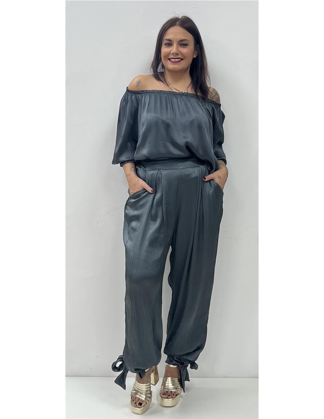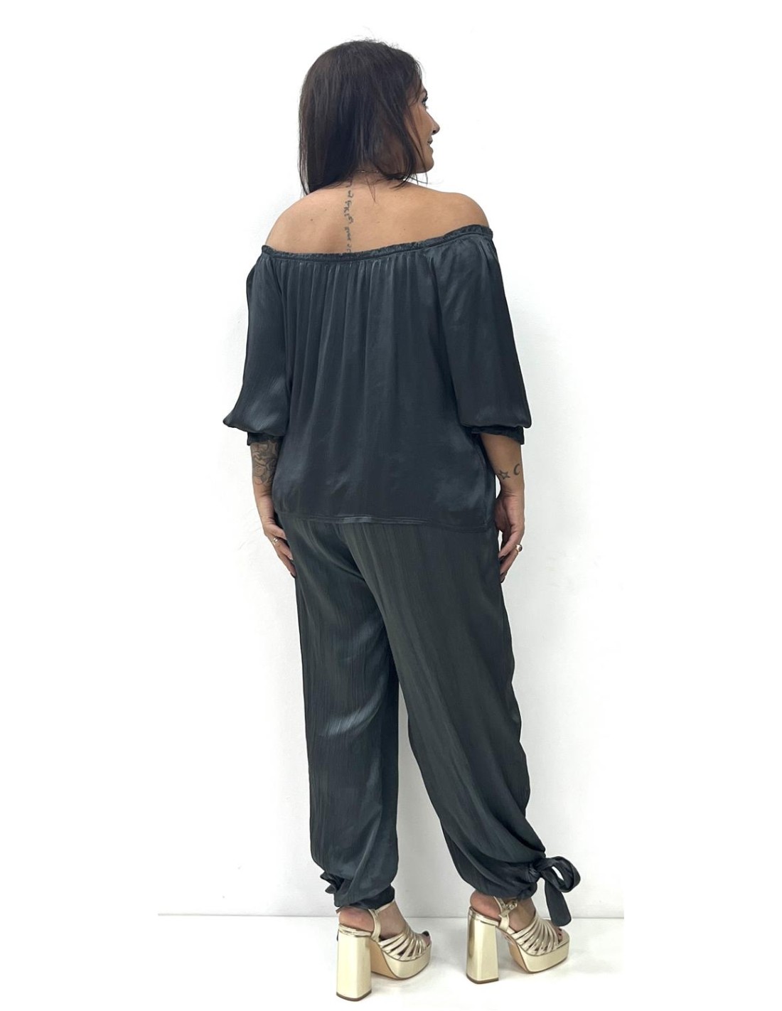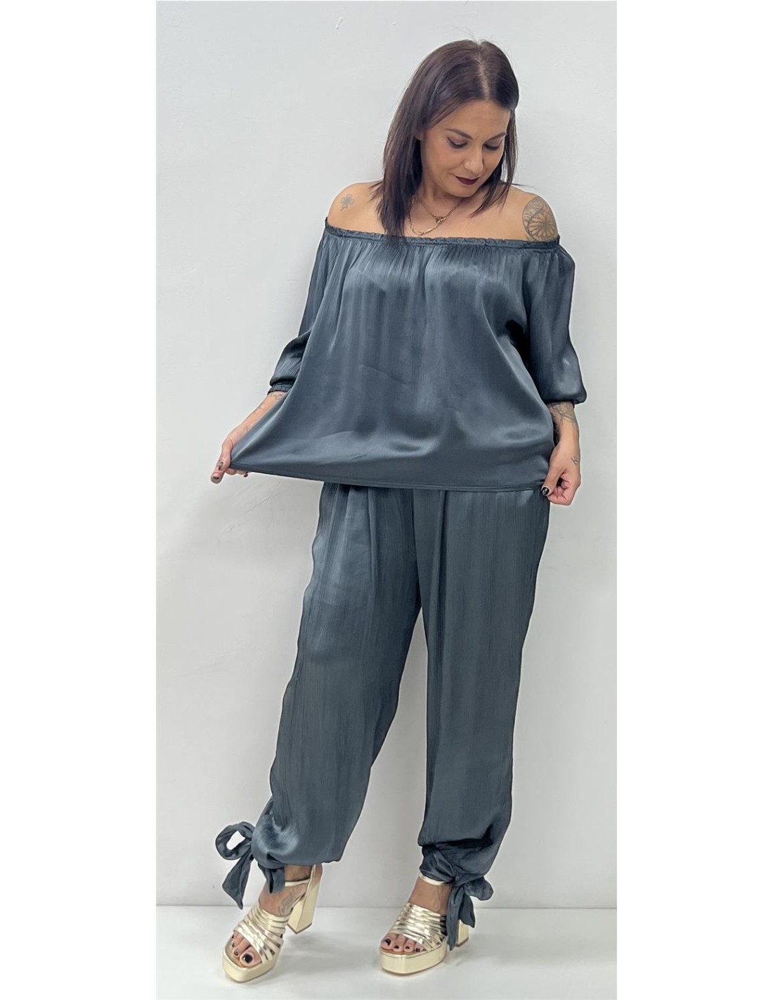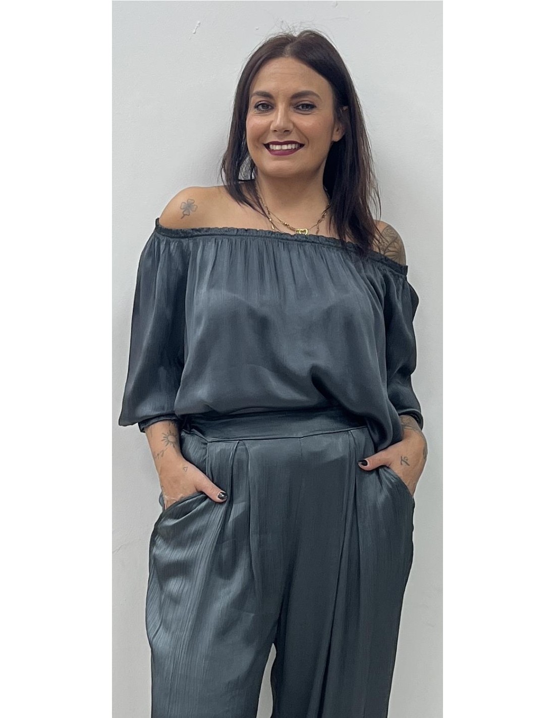 Top satinado cuello barco. Su talla puede dar desde una 38 hasta una 44. Combinado con el tacón TC213