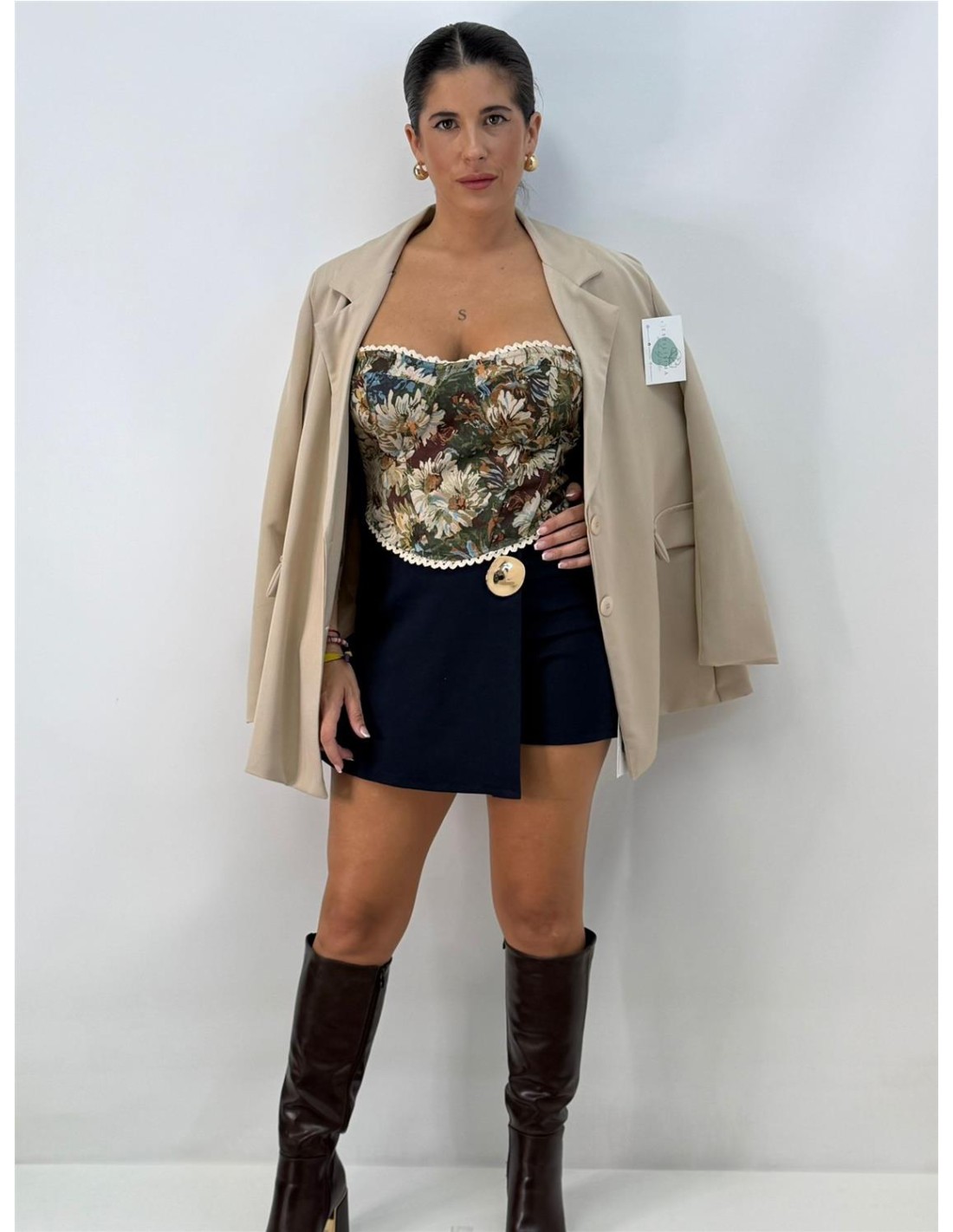 Corset de palabra de honor, espalda panel de abeja. Su talla va desde una 34 hasta una 40 aproximadamente.