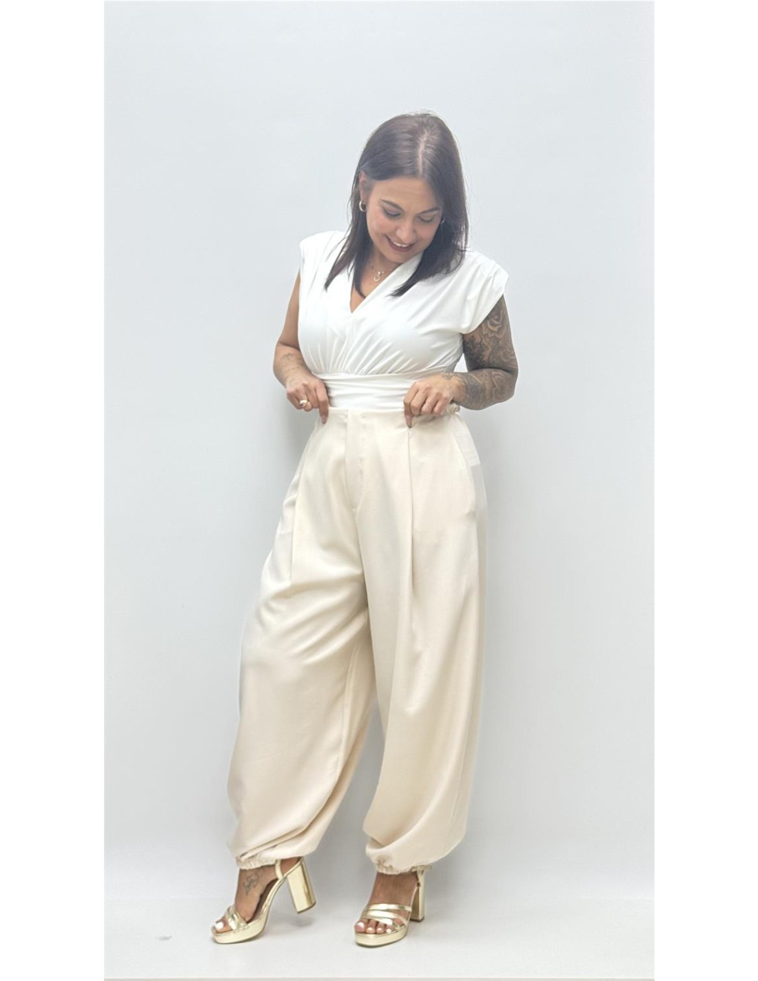 Body de licra con hombreras, es de talla unica dado desde la 36 a 42.