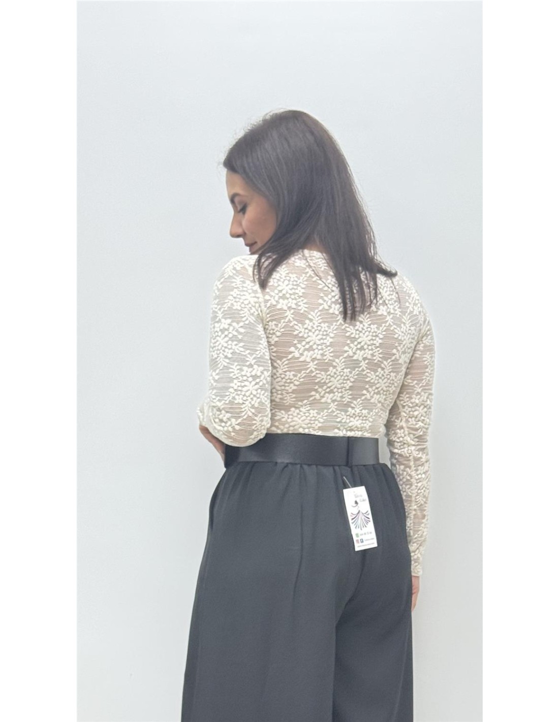 Body de encaja, tiene en la parte delantera una tela al tono que no se ve nada. Por las mangas y la espaldas es transparente. Talla unica que da 36 a 40.