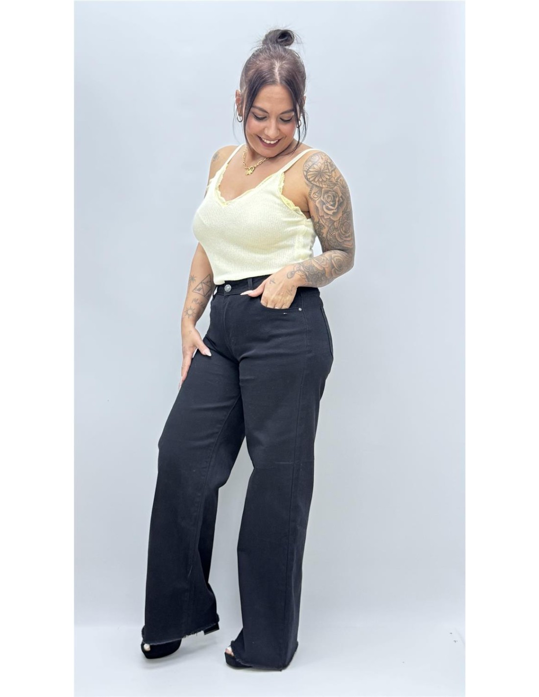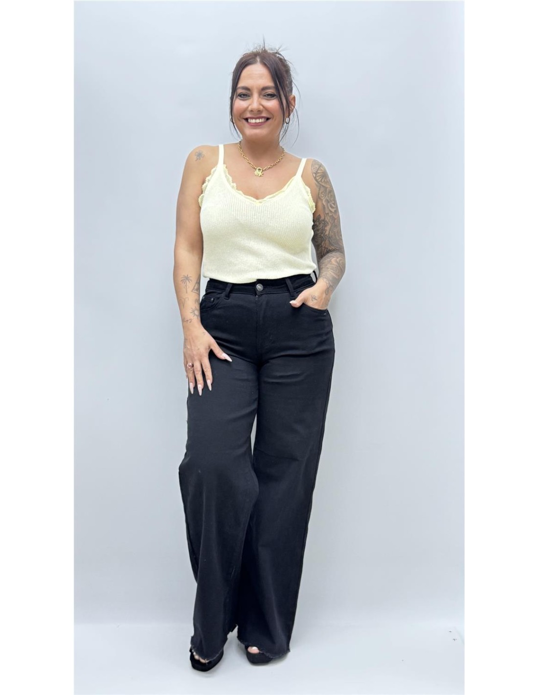 Top de hilo con detalle de encaje en el escote, es de talla unica dando aprox desde la 34 hasta la 40