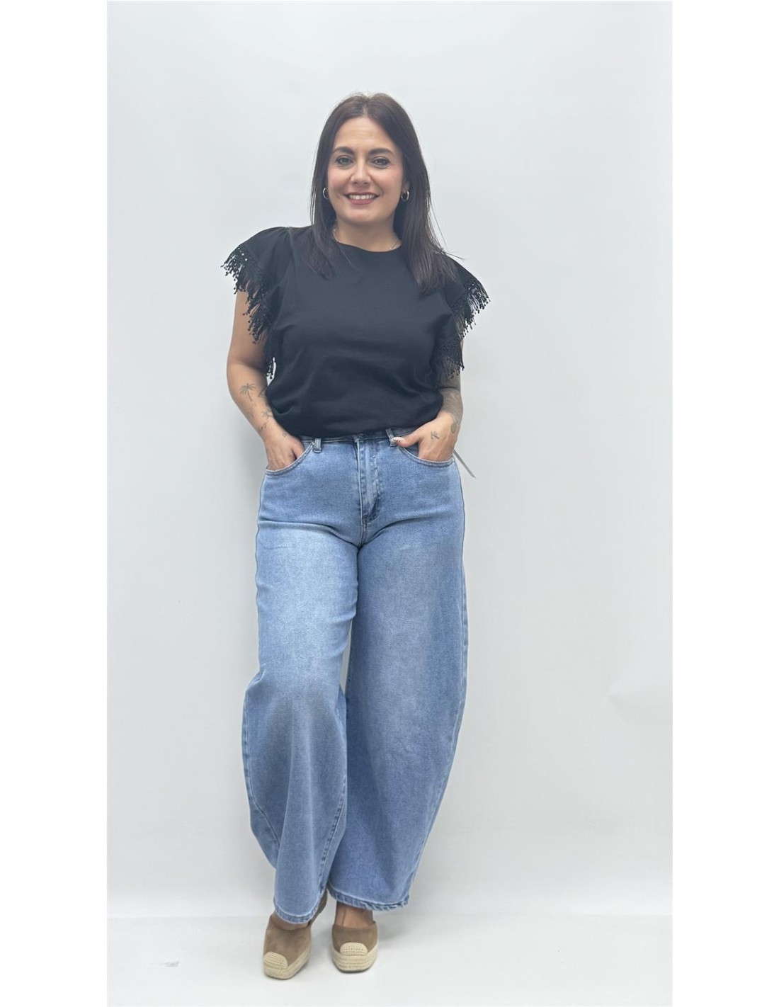 Pantalon vaquero forma barrel, recomendamos una talla menos.