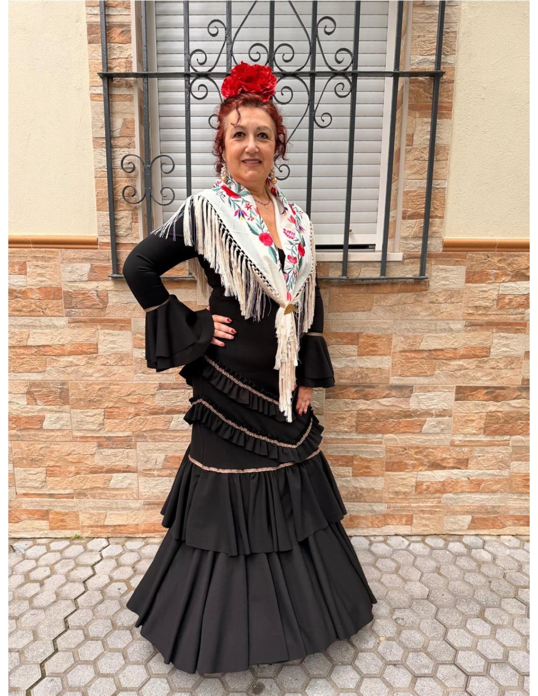 Vestido de flamenca de crepe con elastan, con licra, con garrucha con volantes. XS/S (34-36 APROX), M/L (38-40) Y XL/XXL (42 APROX).