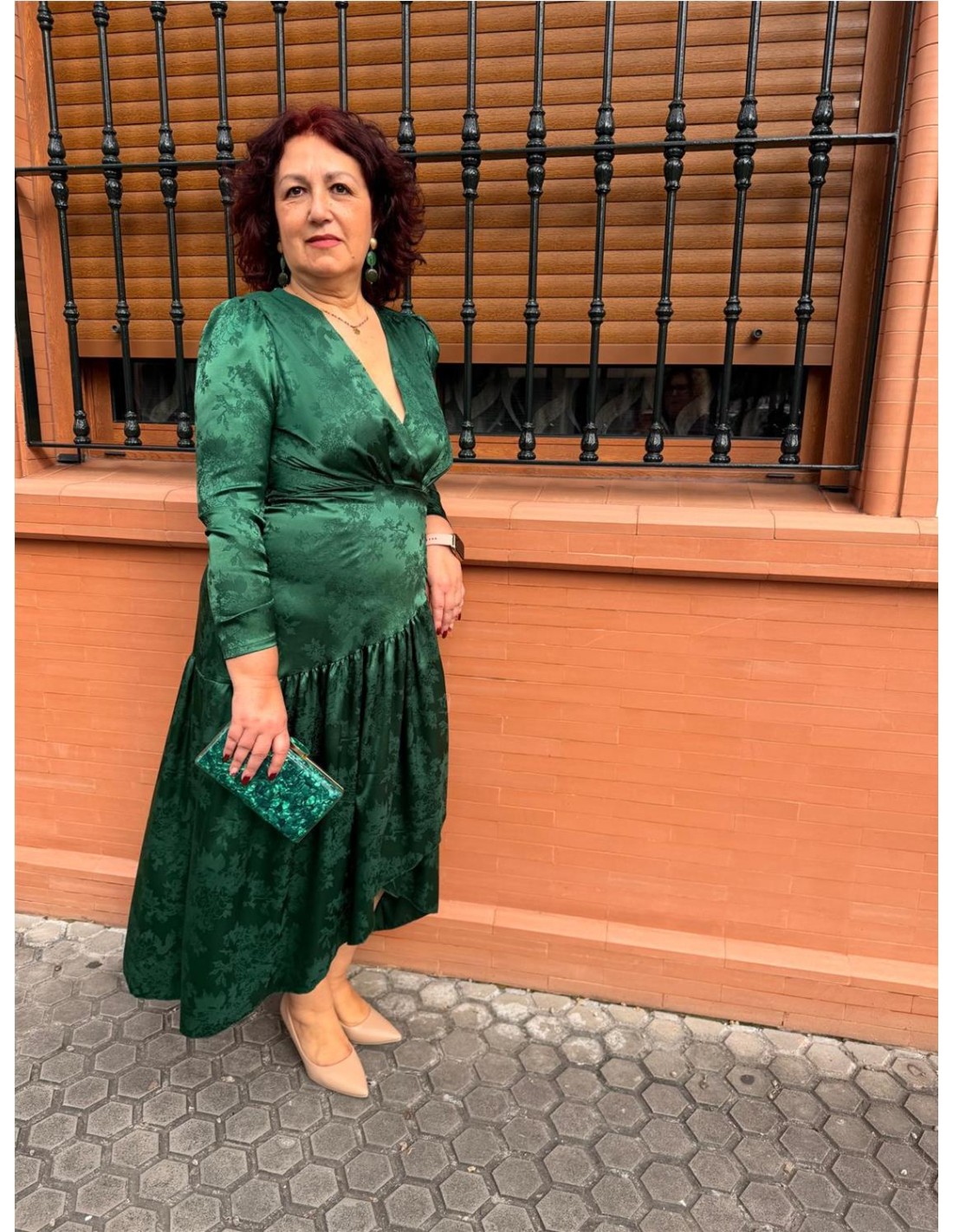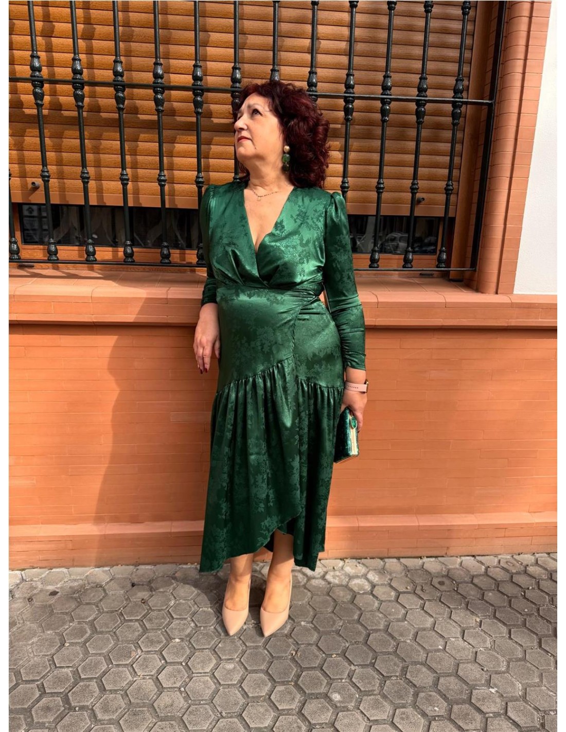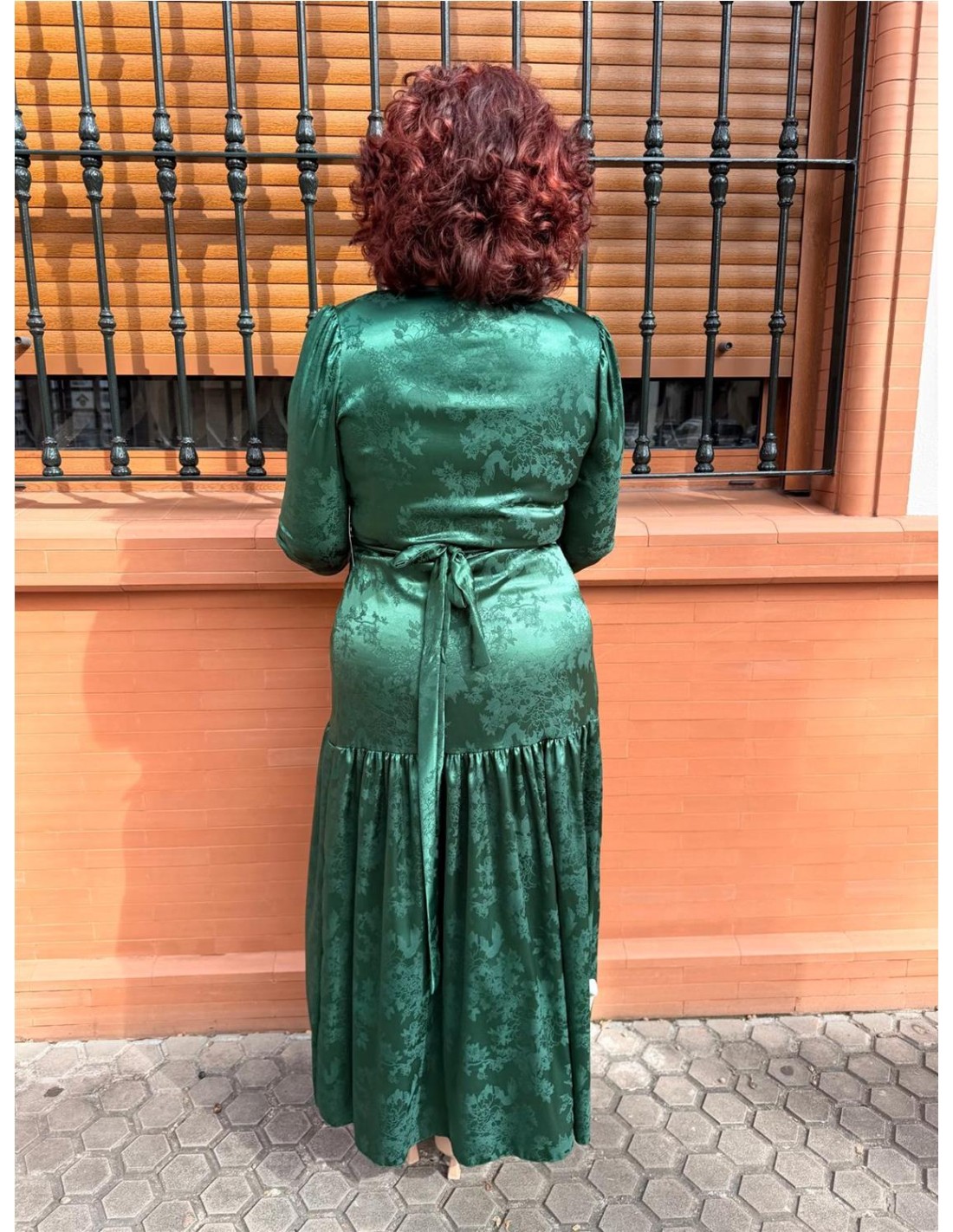 Vestido satinada con estampado cachimir, mangas largas, ajustable con lazada. Talla única desde una 36 hasta una 44 aproximadamente.