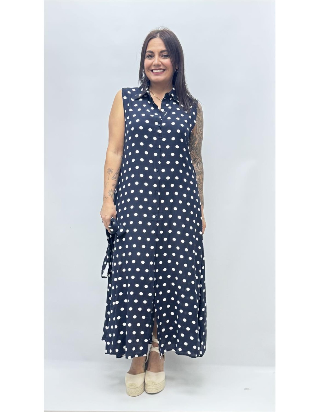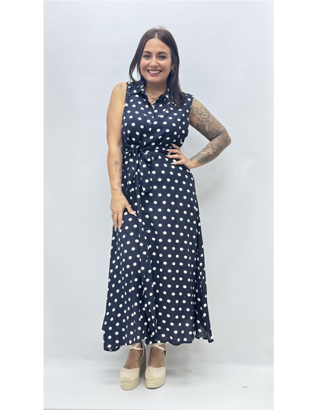 Vestido camisero estampado lunar de largo midi, vienen por talla dando aprox S(36-38) M(38-40) y L (40-42)