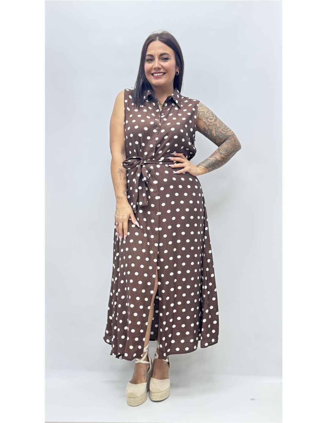 Vestido camisero estampado lunar de largo midi, vienen por talla dando aprox S(36-38) M(38-40) y L (40-42)