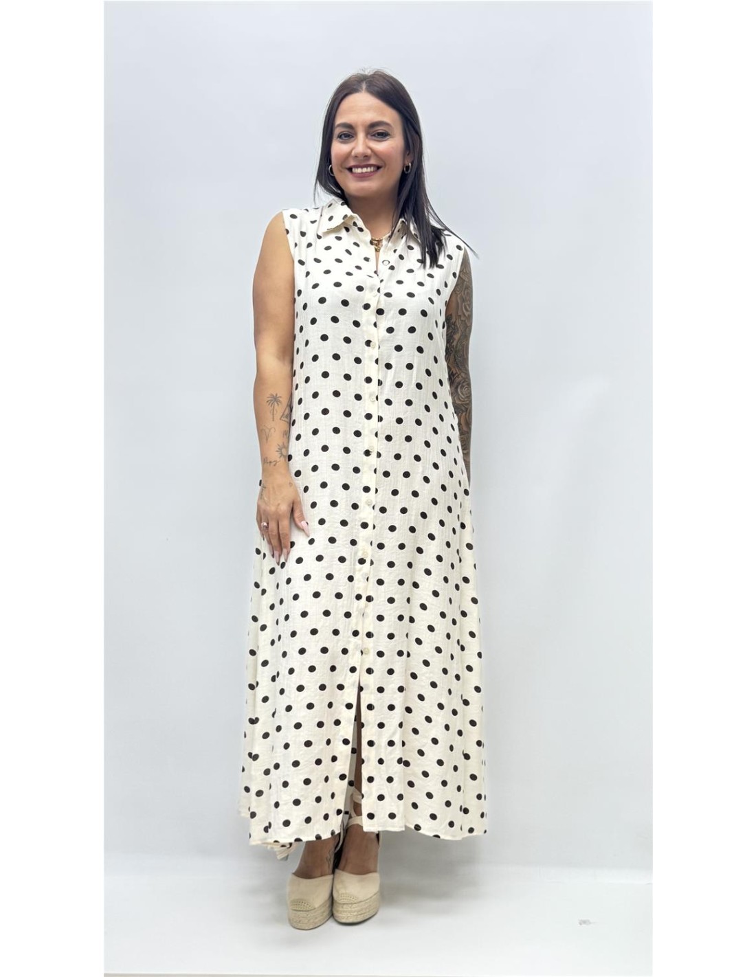 Vestido camisero estampado lunar de largo midi, vienen por talla dando aprox S(36-38) M(38-40) y L (40-42)